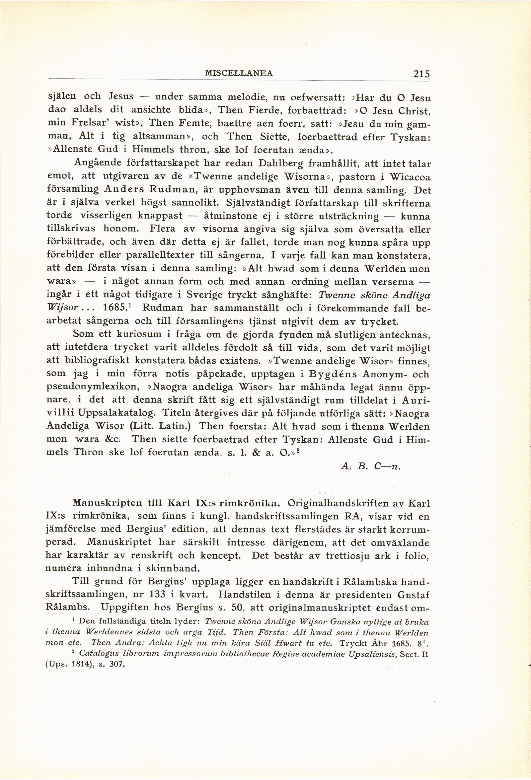 att bibliografiskt konstatera bådas existens. »Twenne andelige Wisor» finnes,