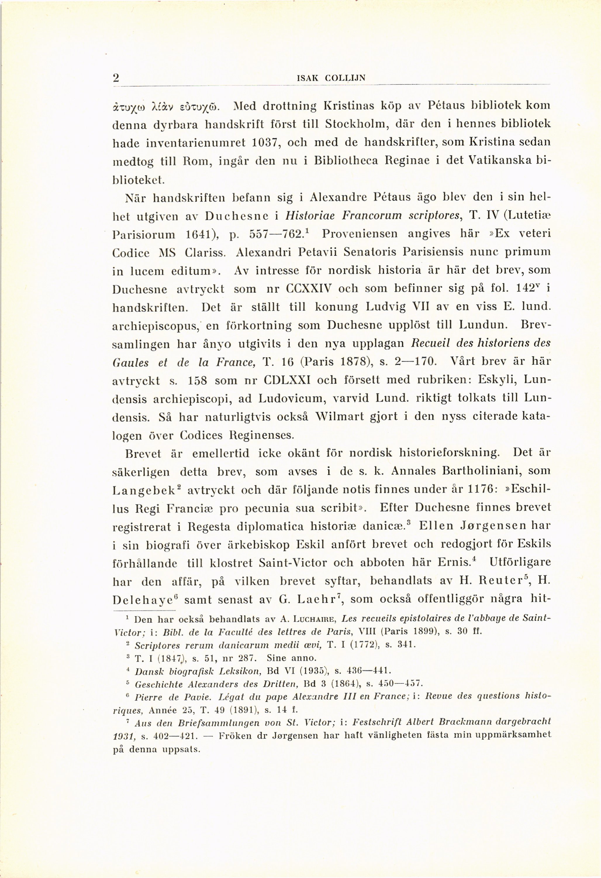 i sin biografi över ärkebiskop Eskil anfört brevet och redogjort för Eskils