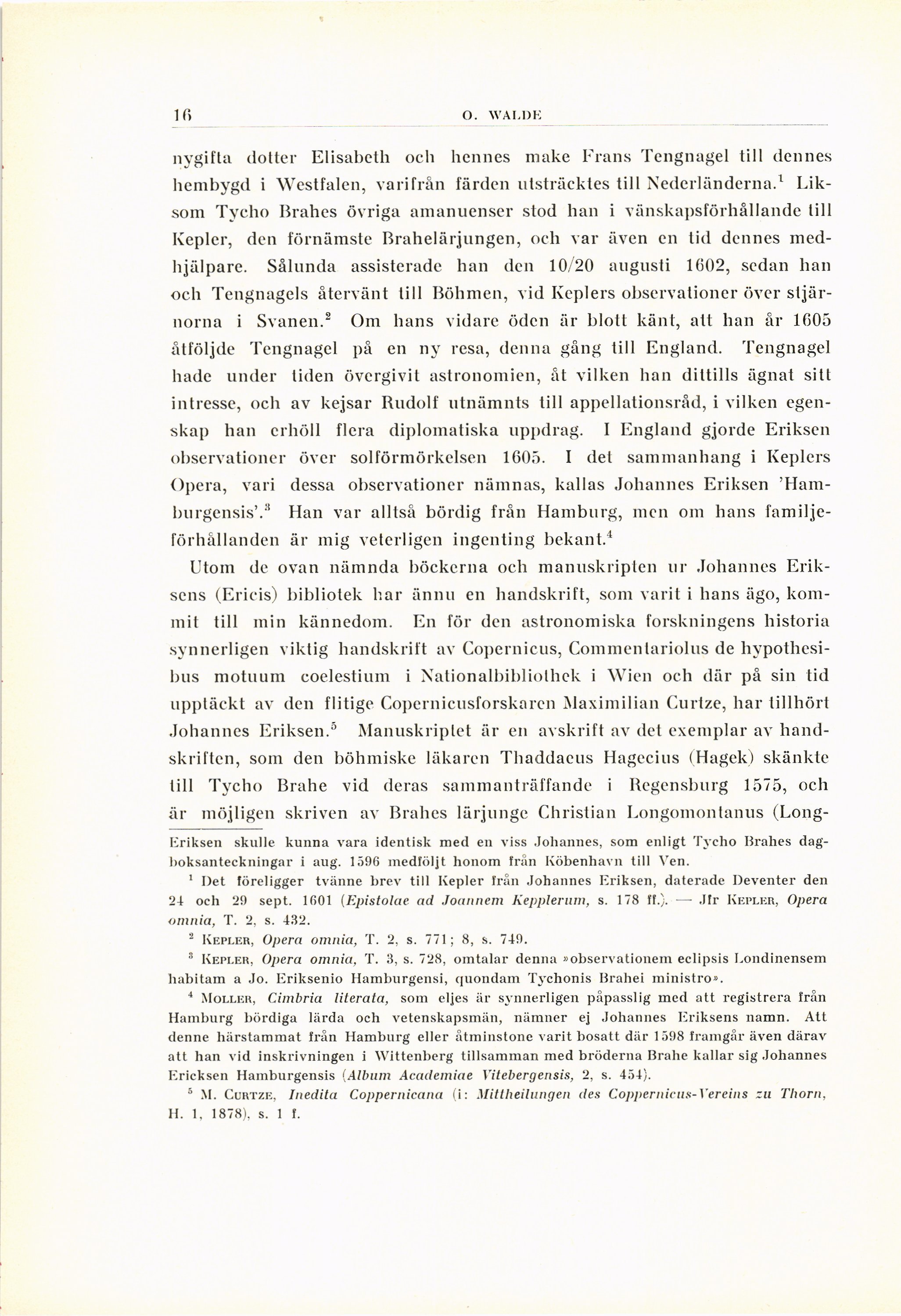1 I)et föreligger tvänne brev till Kepler från Johannes Eriksen, daterade Deventer den