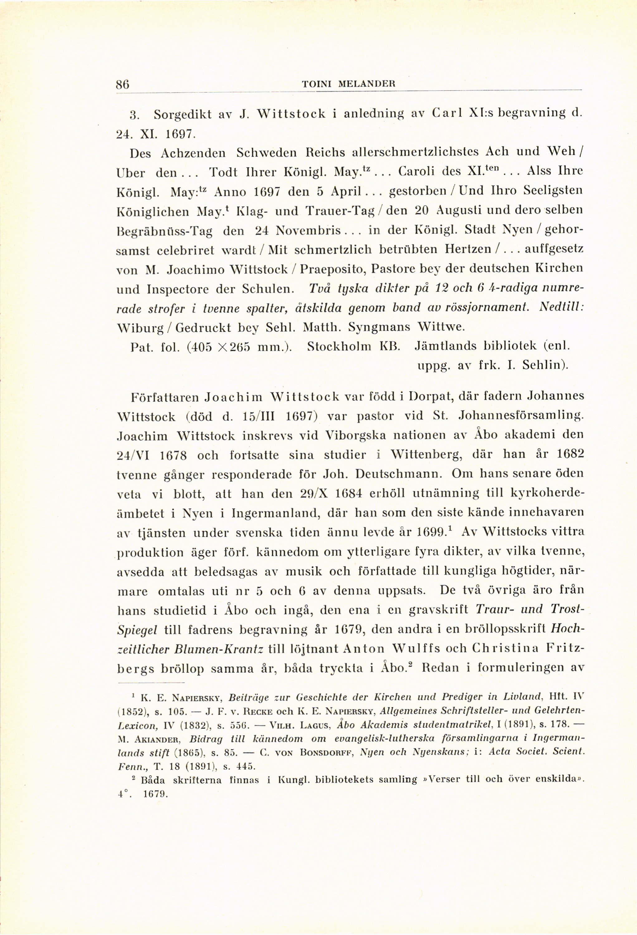 3. Sorgedikt av J. Wittstock i anledning av Cai l XI:s begravning d.
