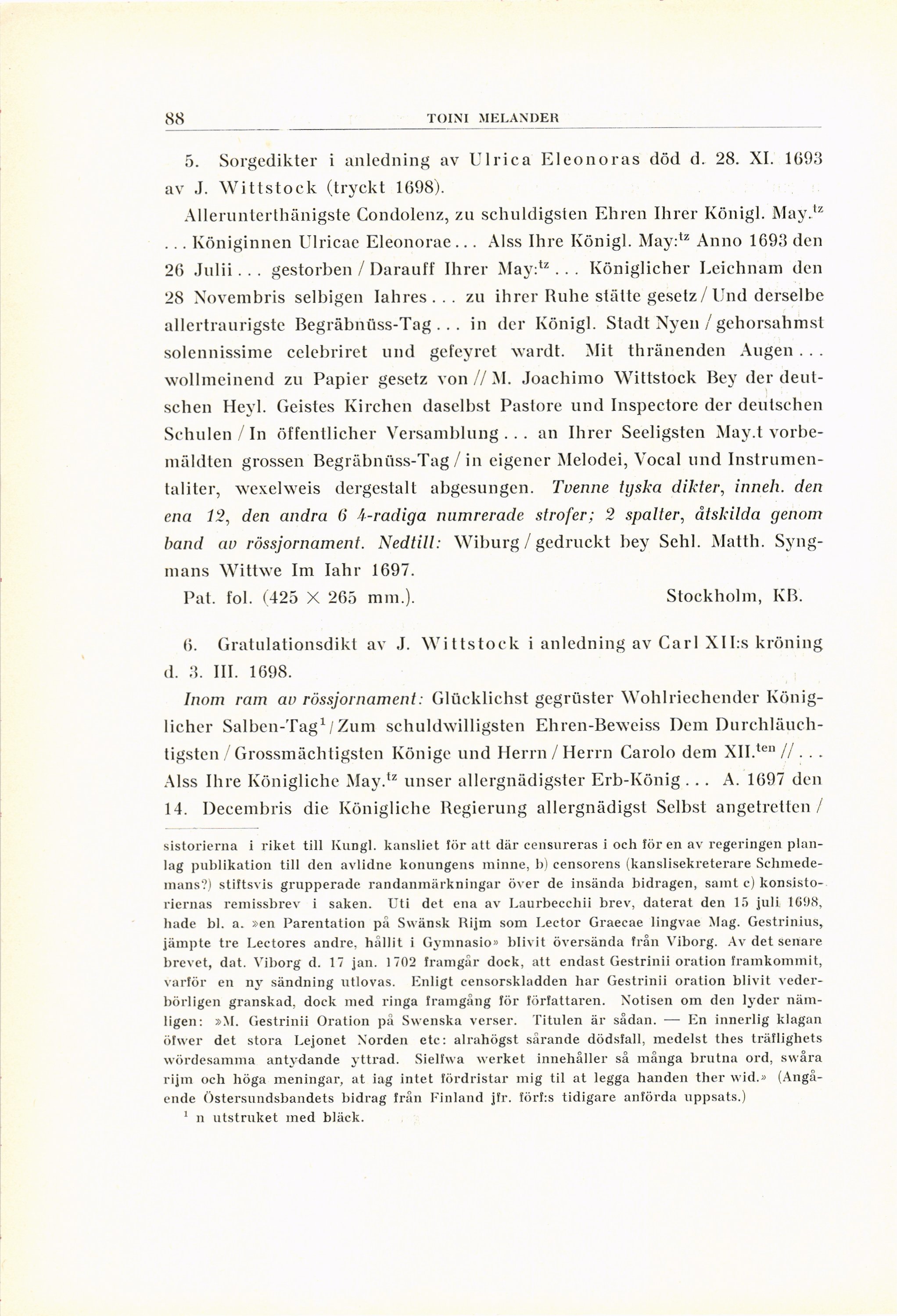 (i. Gratulationsdikt av J. Wittstock i anledning av Carl XII:s kröning