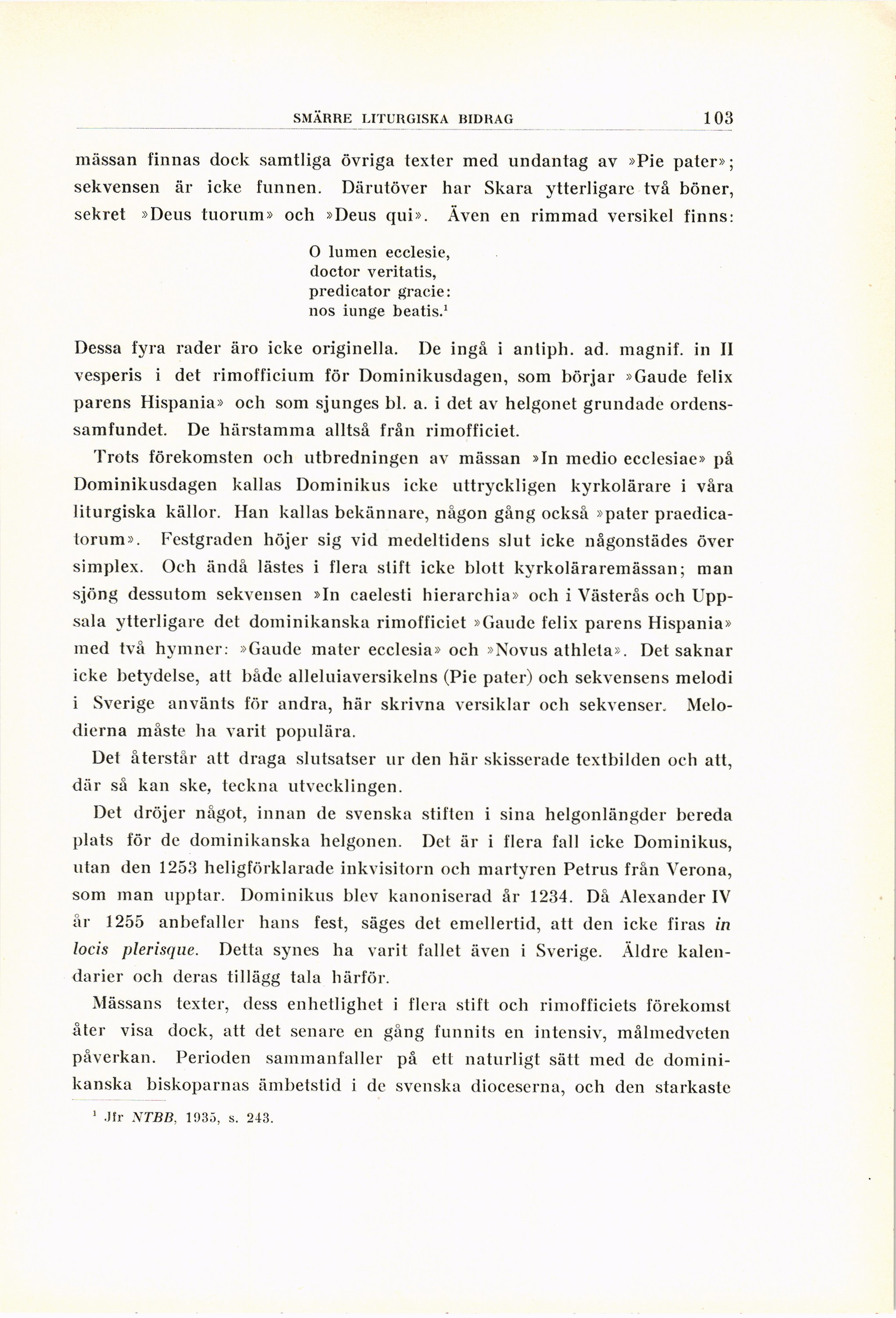 Uppsala ytterligare det dominikanska rimofficiet »Gaude felix parens Hispania»