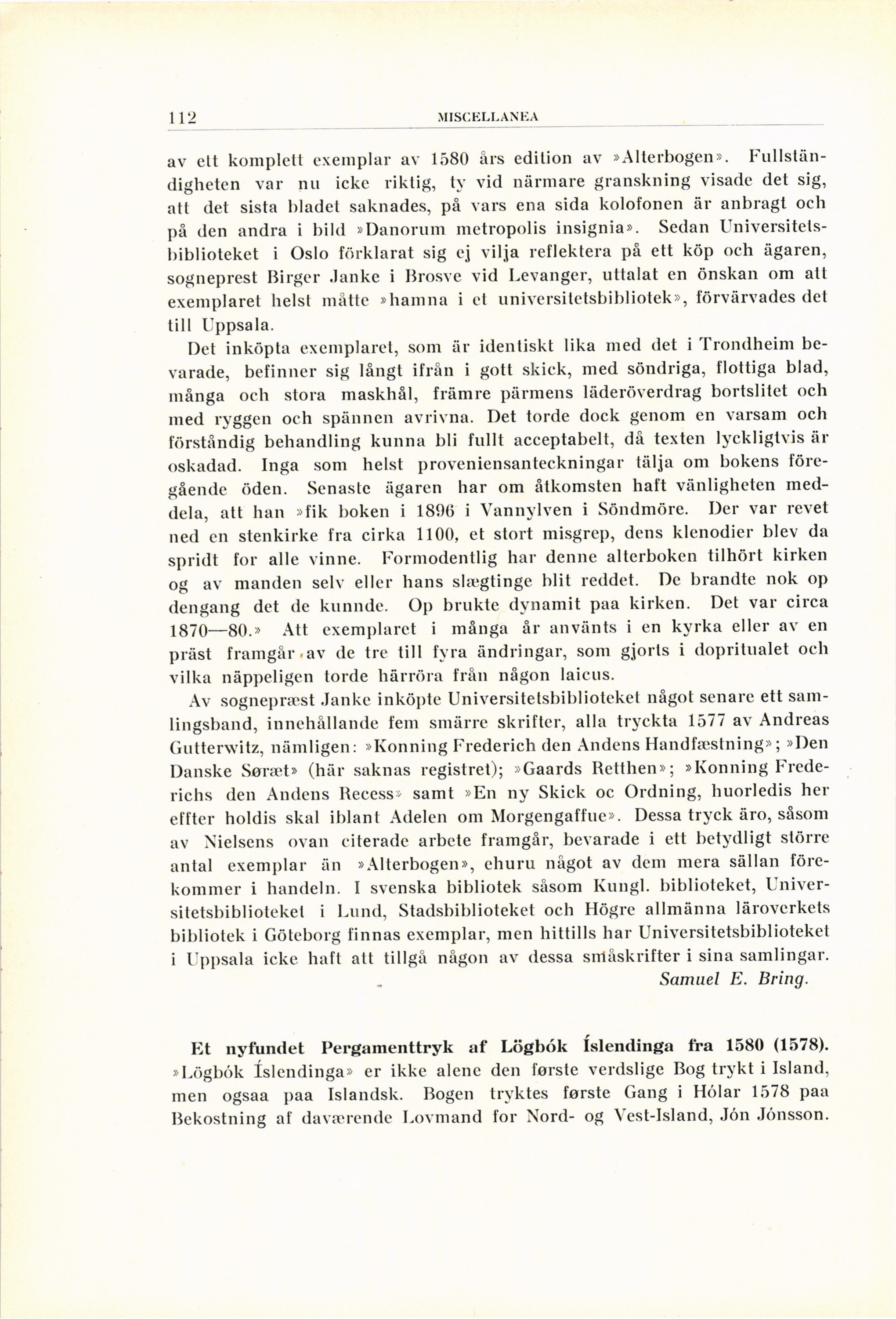 Av sognepræst Janke inköpte Universitetsbiblioteket något senare ett