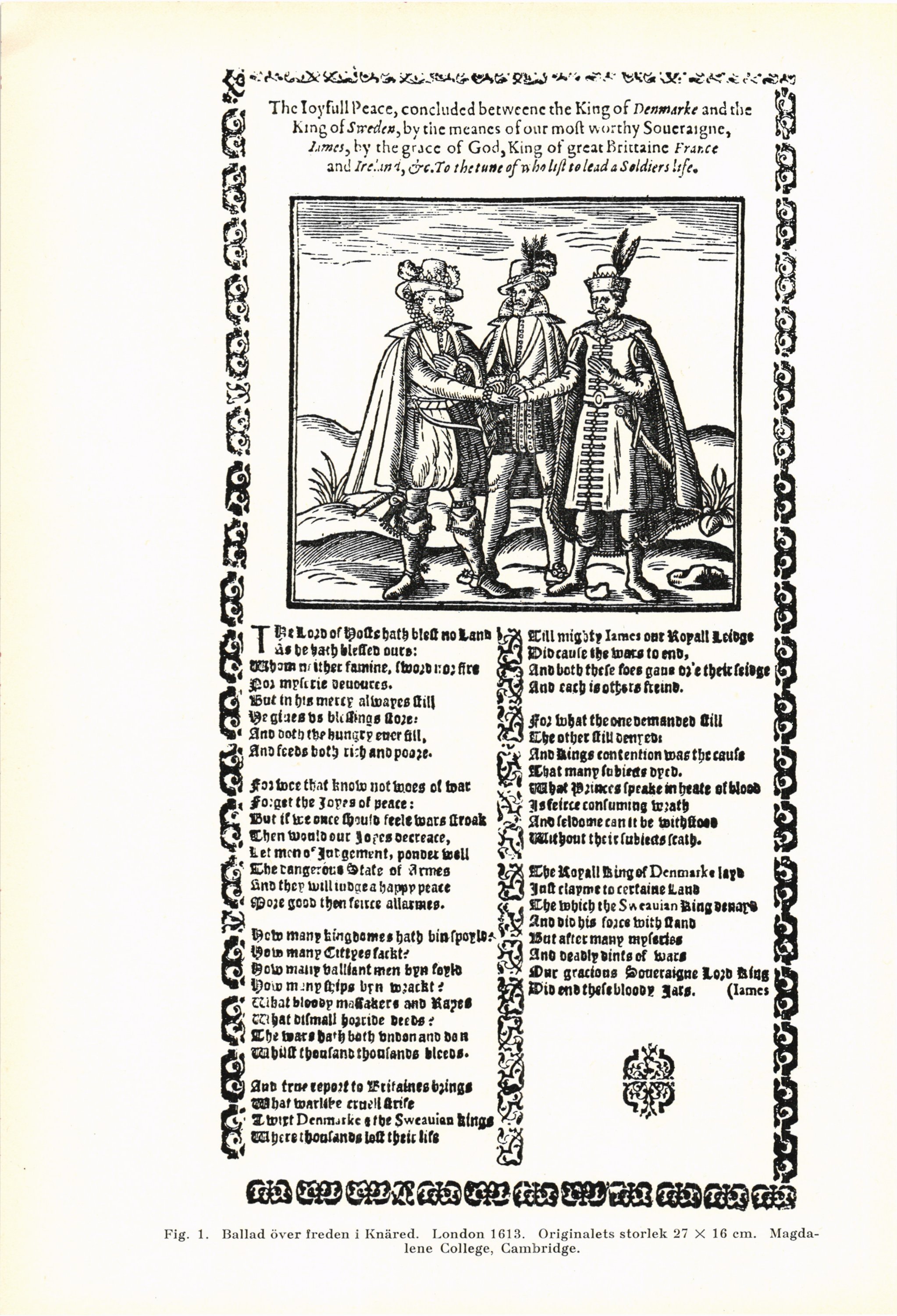 Ballad över freden i Knäred. London 1613. Originalets storlek 27 X 16 em.