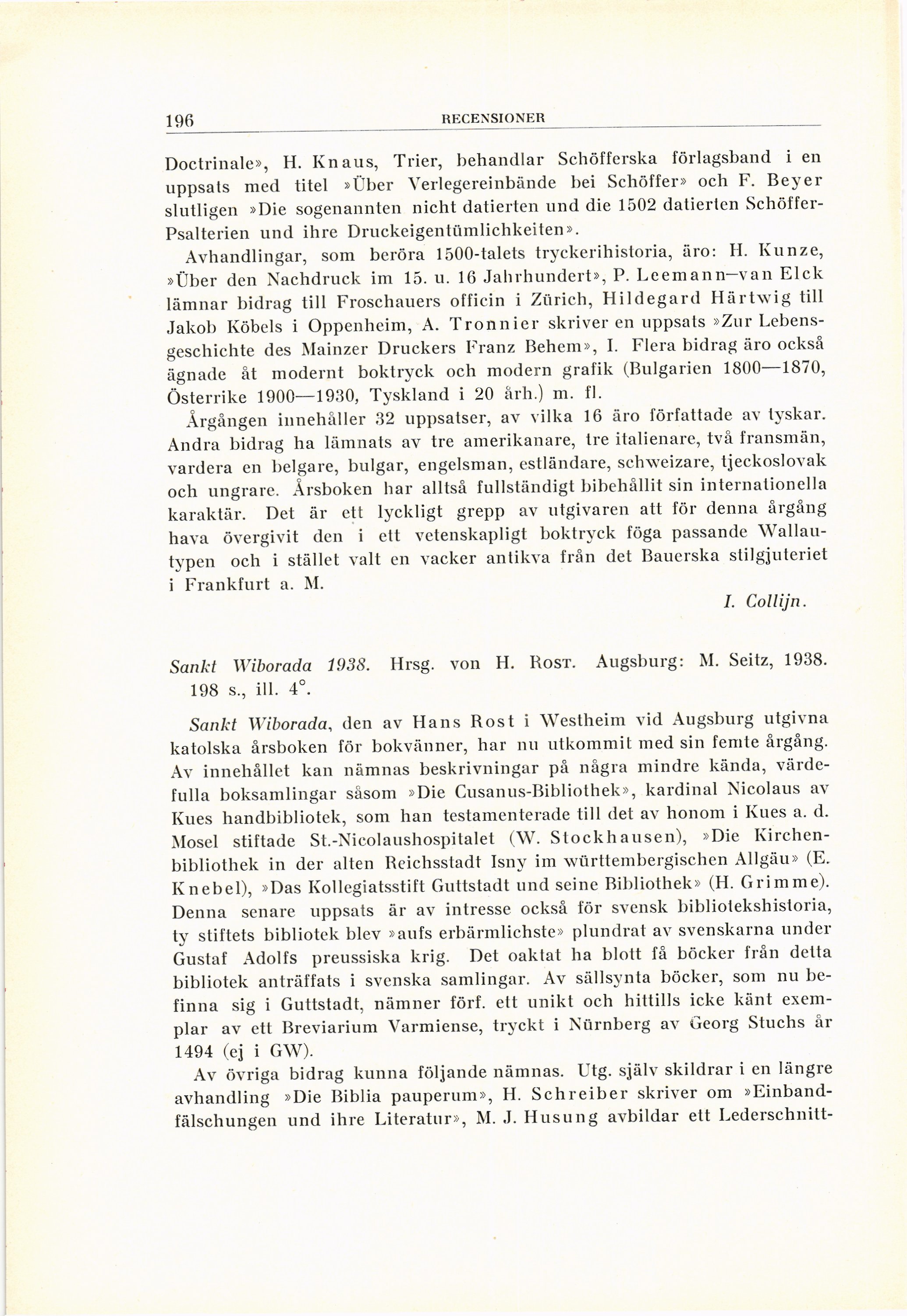 Doctriiiale», H. Knaus, Trier, behandlar Schöfferska förlagsband i en