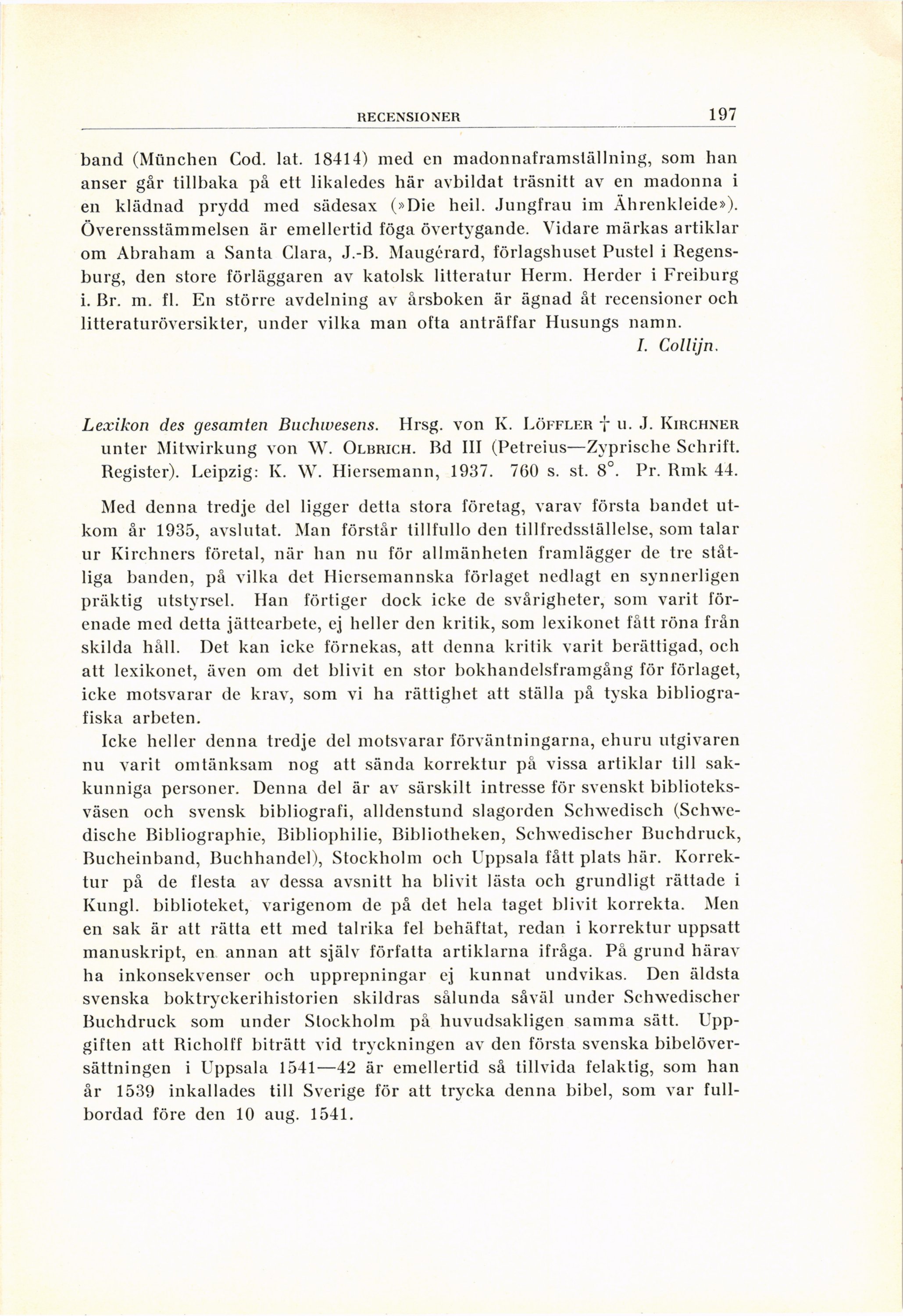 I. Collijn.