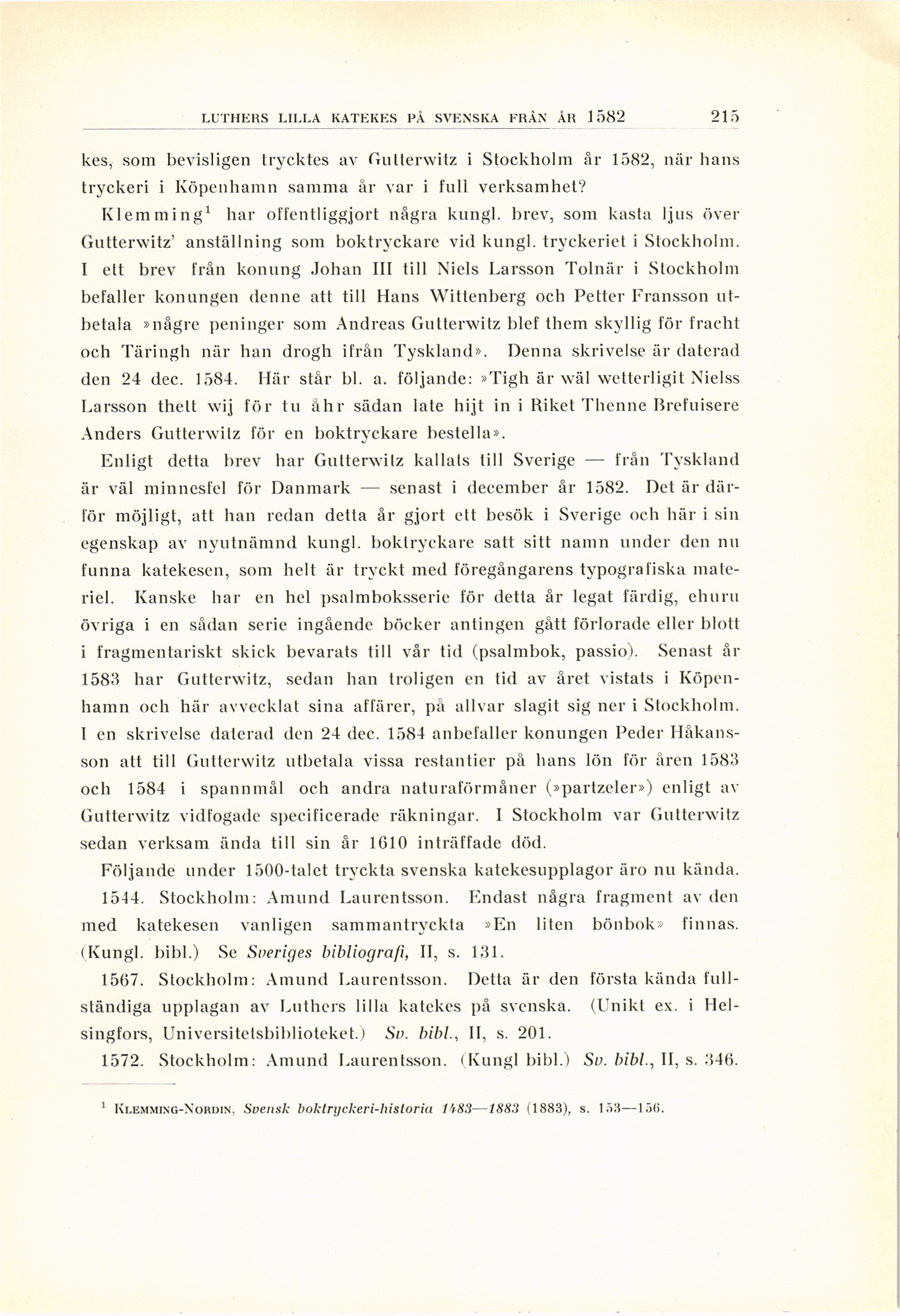 kes, som bevisligen trycktes av Gutterwitz i Stockholm år 1582, när hans