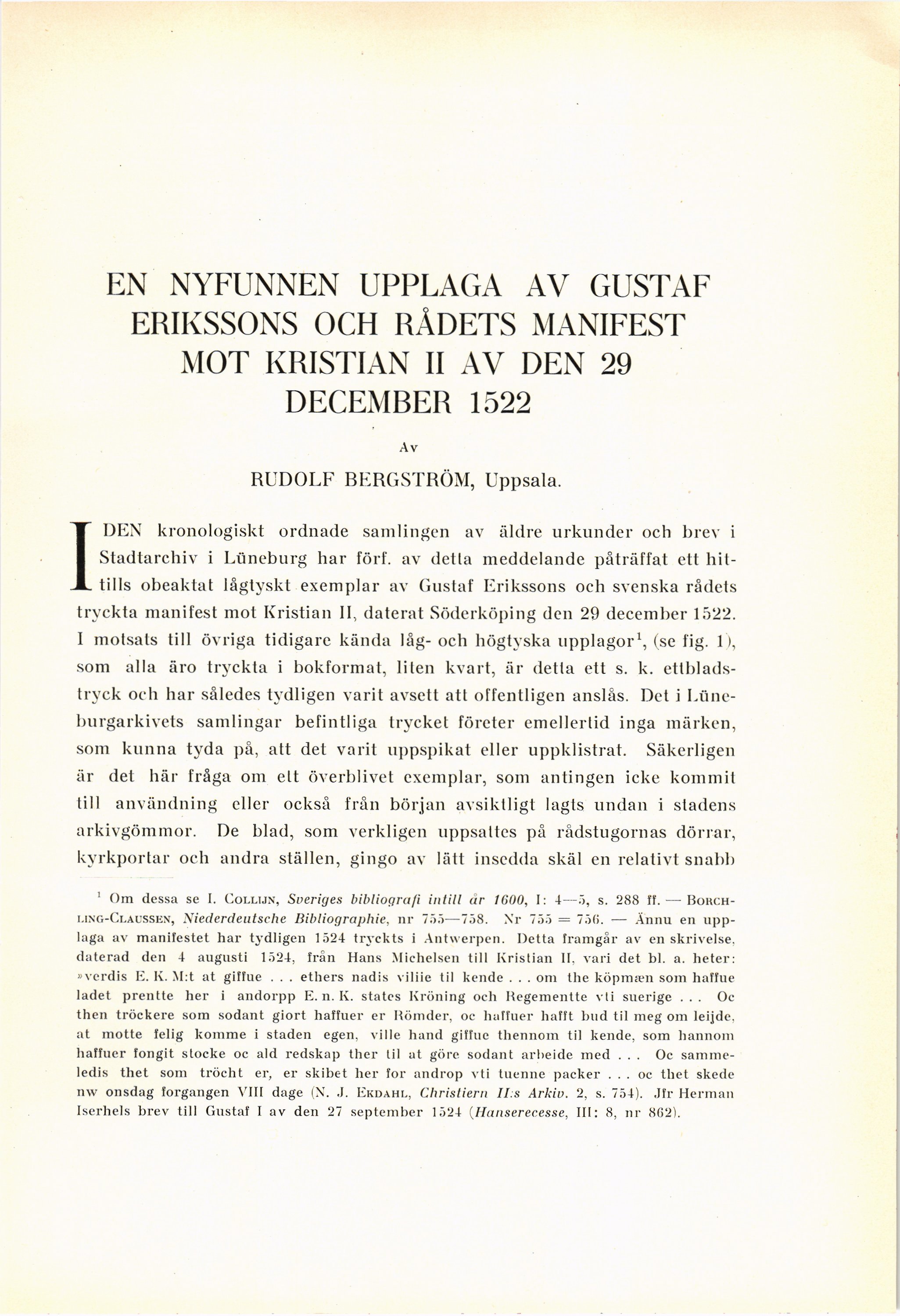 tryckta manifest mot Kristian II, daterat Söderköping den 29 december 1522.