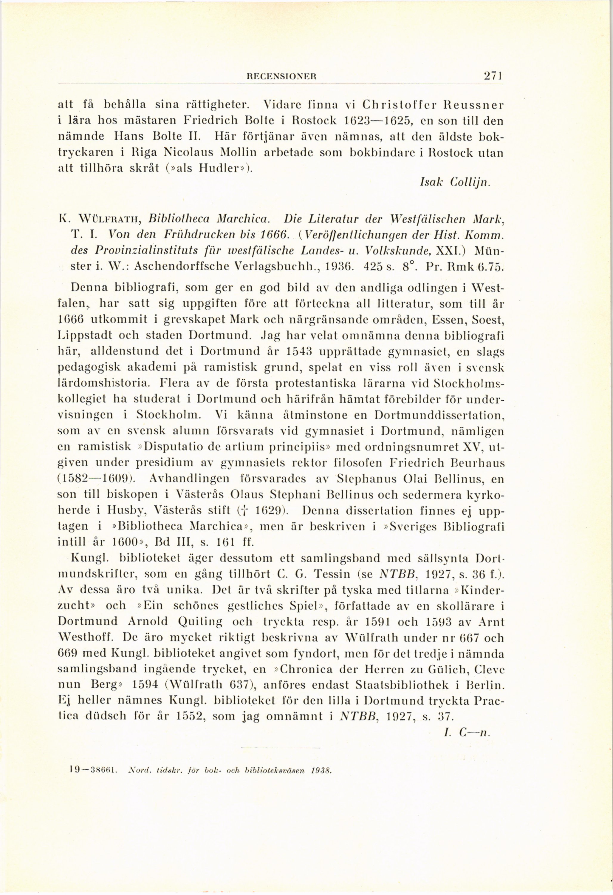 19 —3S(j(il. Xortl. tidskr. för bok■ och biblioteksväsen 1938.