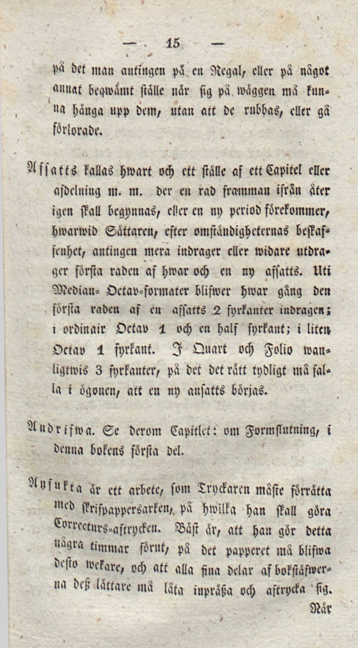 Octav 1 fyrkant. I Quart och Folio