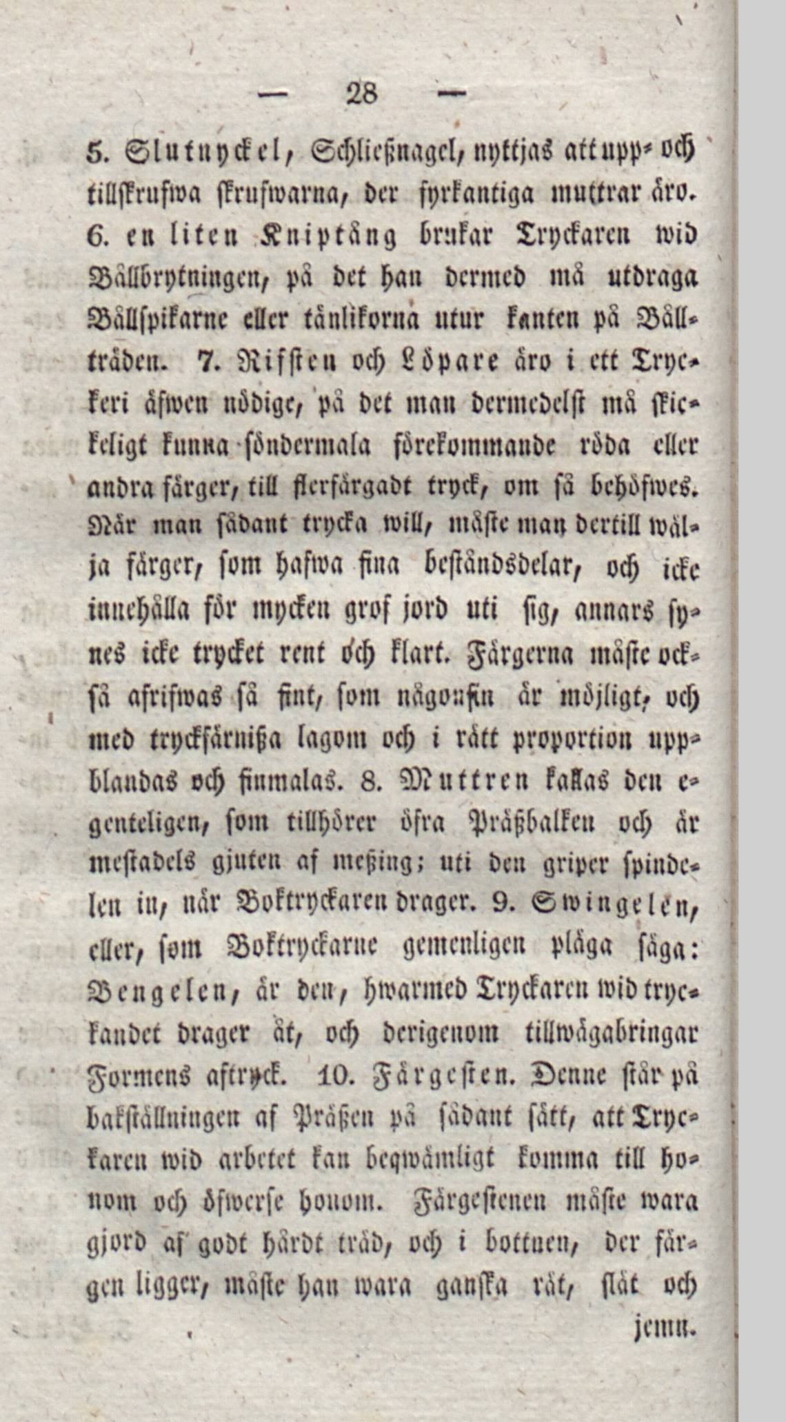 spindelen in, när Boktryckaren drager. 9. Swingelen,
