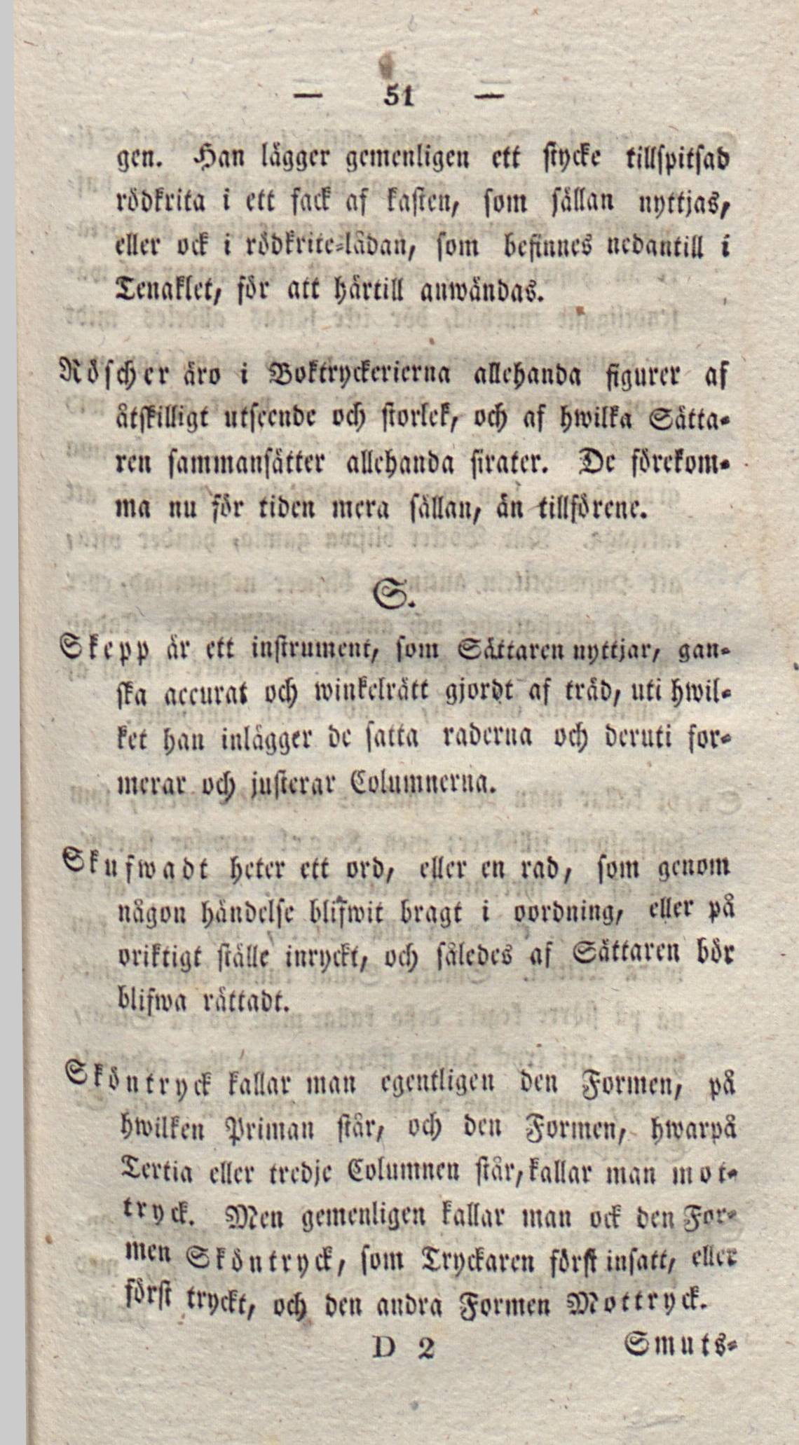 Full resolution (JPEG) - On this page / på denna sida - [Senare Delen] - Typographisk Orda-Bok, att beqwämligt slå upp för Nybegynnare; inrättad efter Alphabetet - Rödkrita - Röscher - Skepp - Skufwadt - Sköntryck