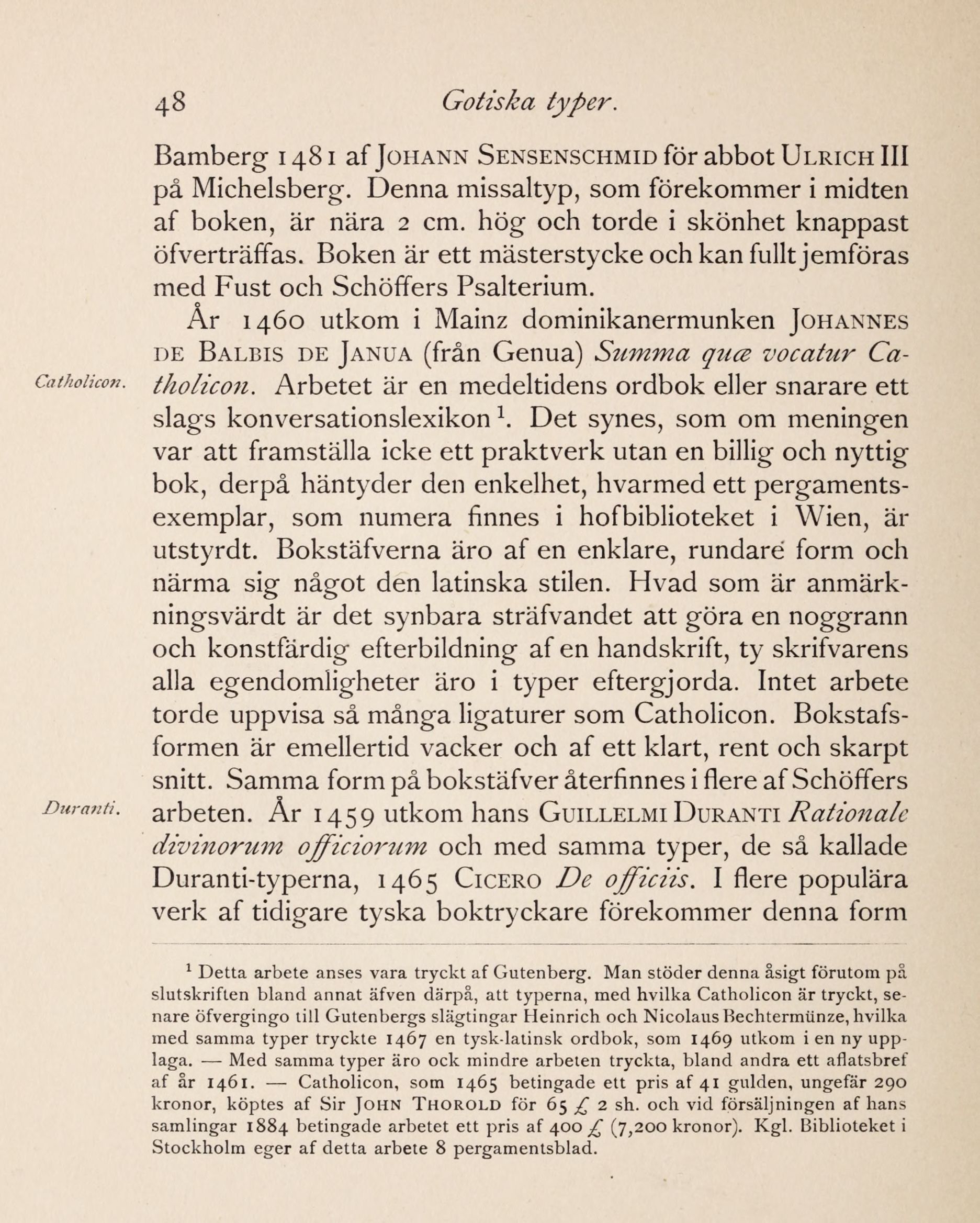 af år 1461. — Catholicon, som 1465 betingade ett pris af 41 gulden, ungefär 290