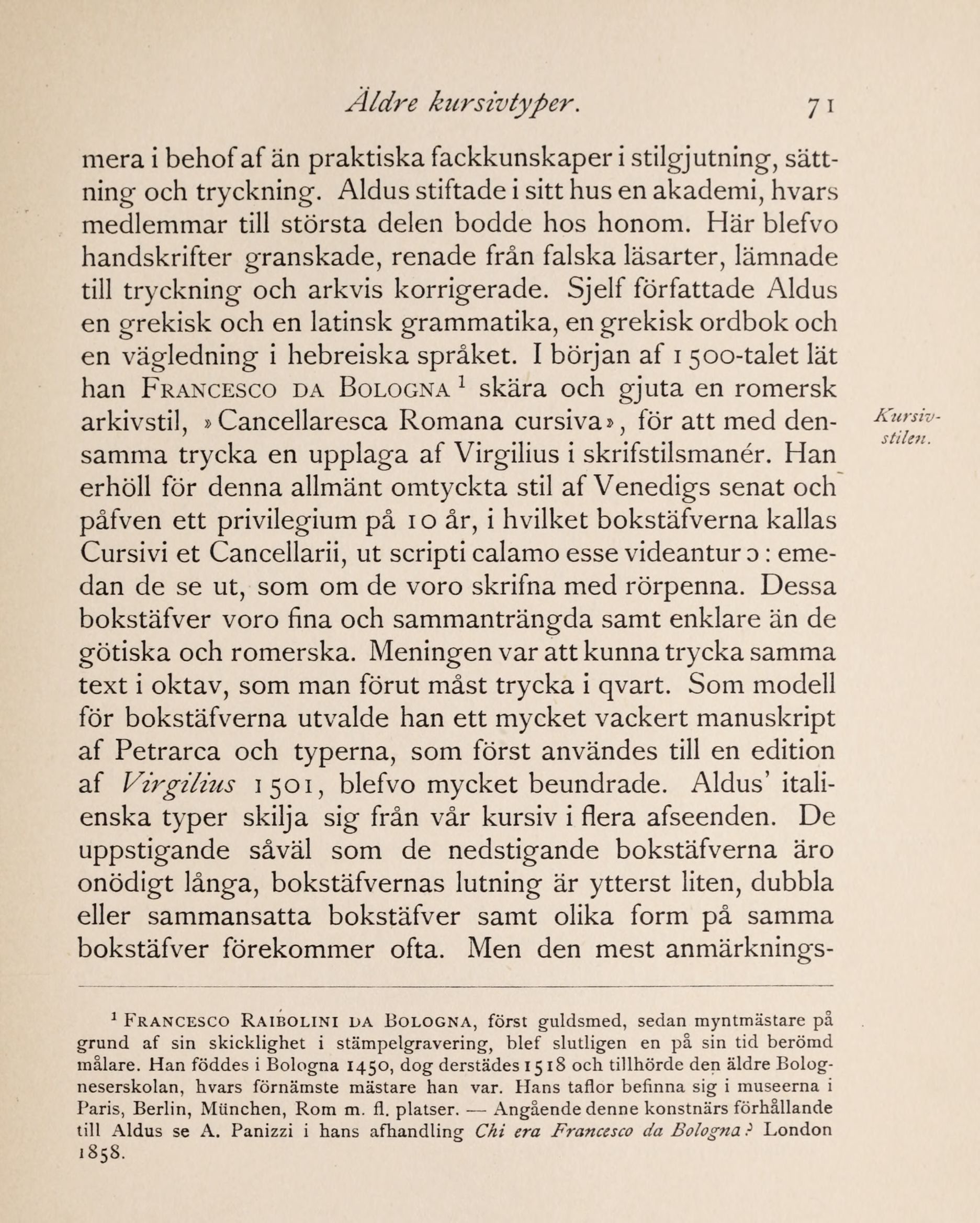 till Aldus se A. Panizzi i hans afhandling Chi era Francesco da Bologna? TLondon