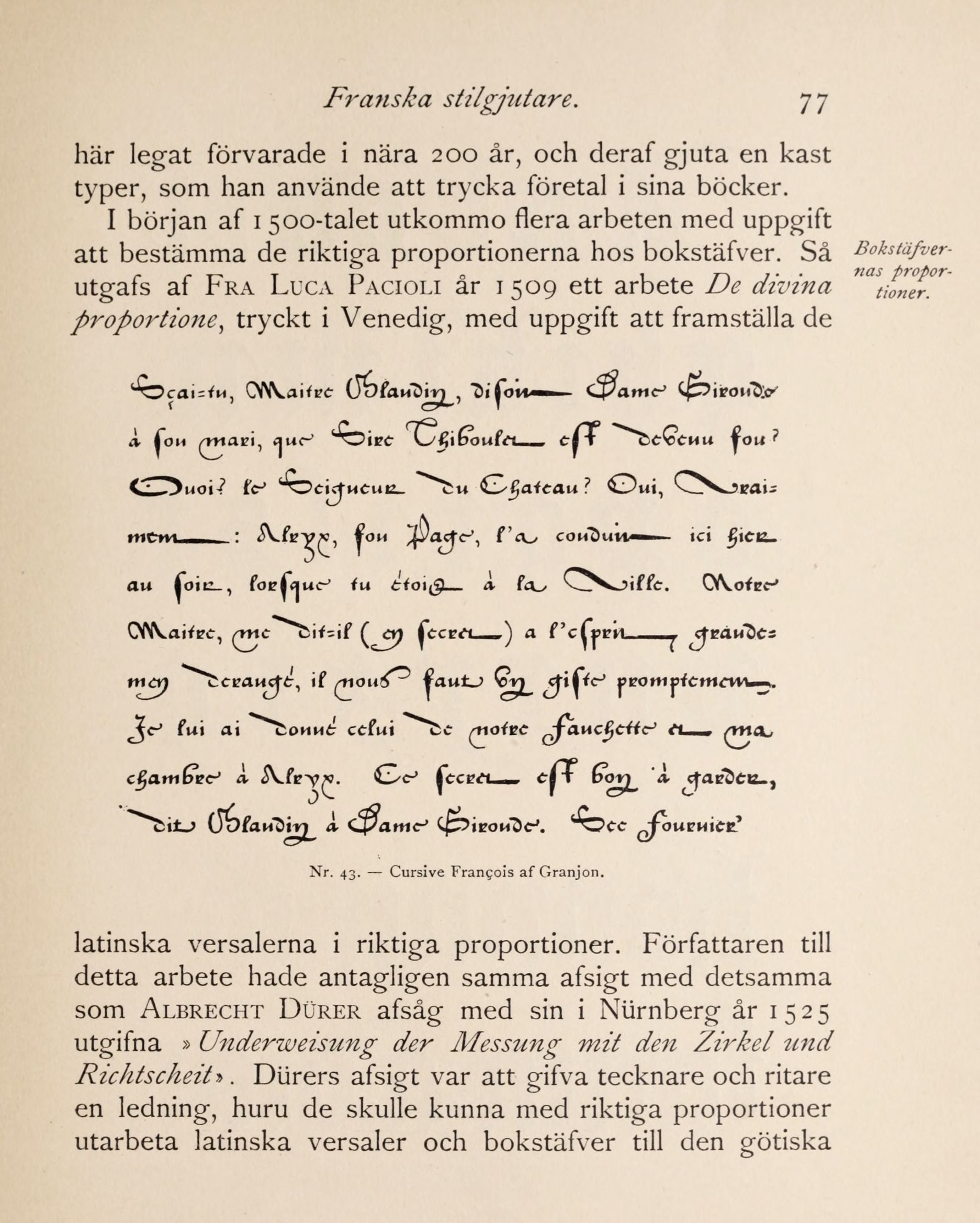 att bestämma de riktiga proportionerna hos bokstäfver. Så