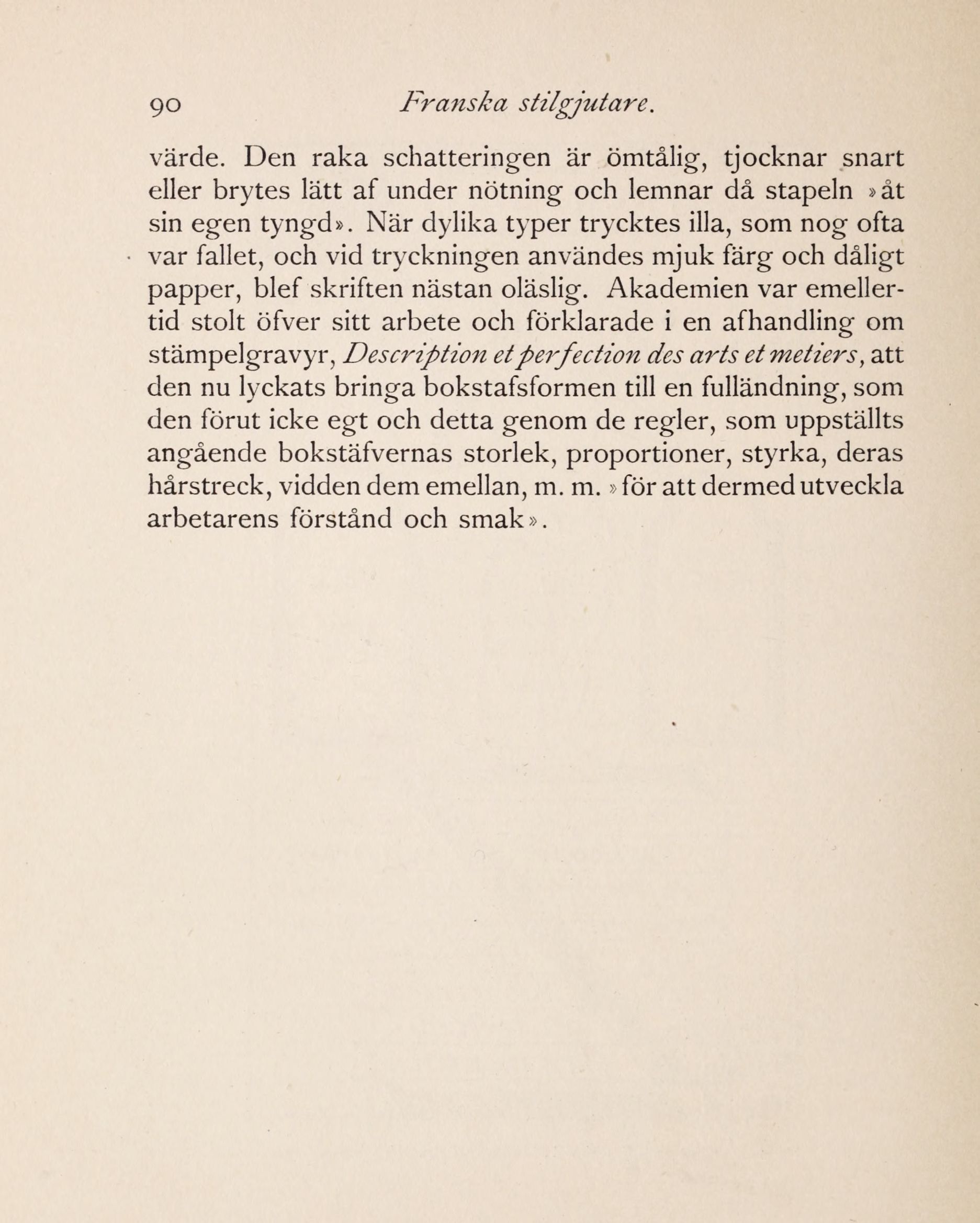 angående bokstäfvernas storlek, proportioner, styrka, deras