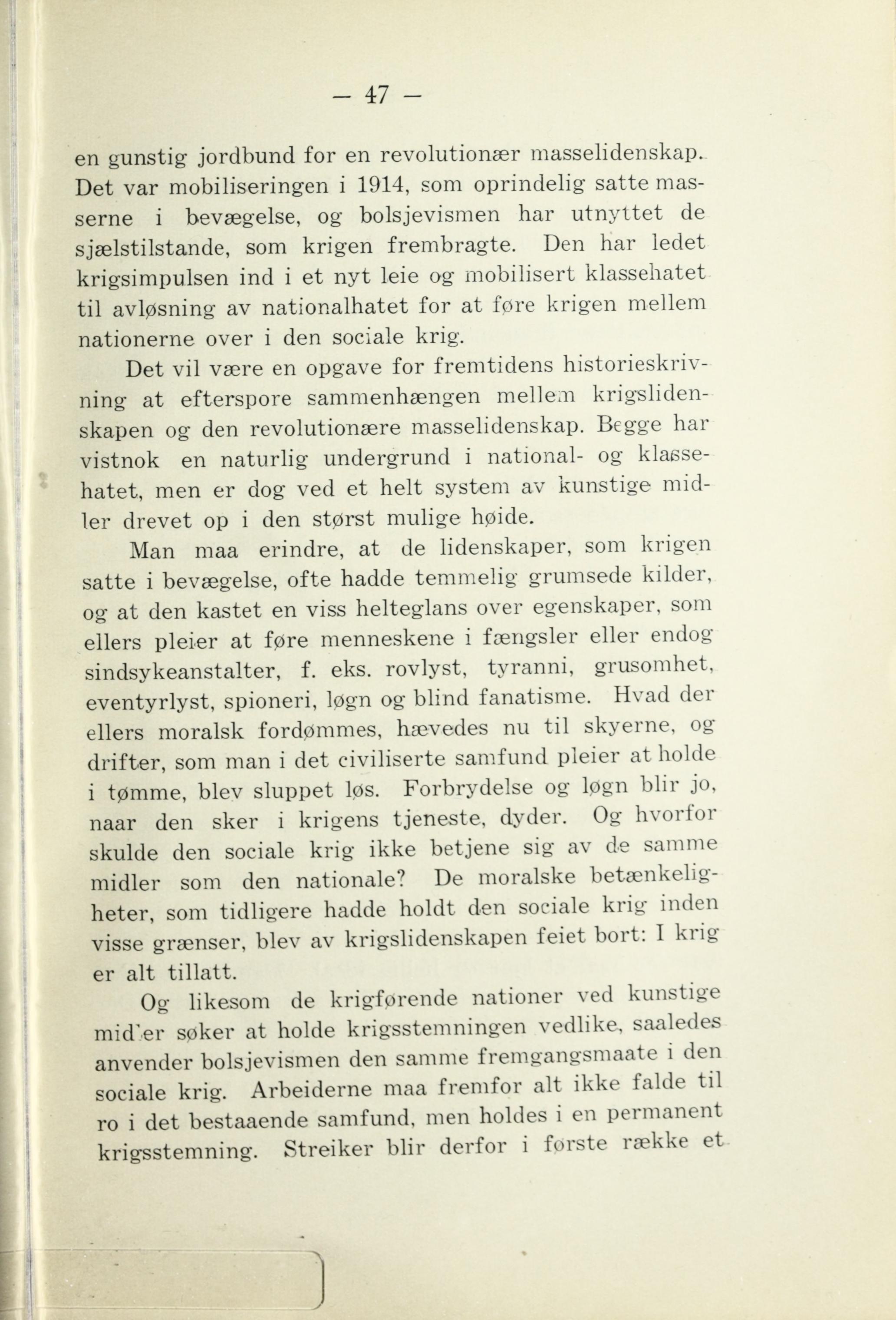 sociale krig. Arbeiderne maa fremfor alt ikke falde til