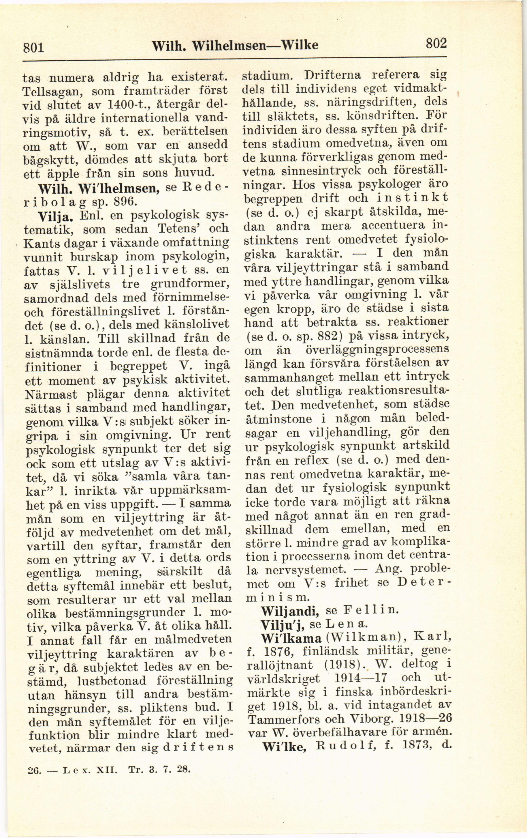 Vilja. Enl. en psykologisk