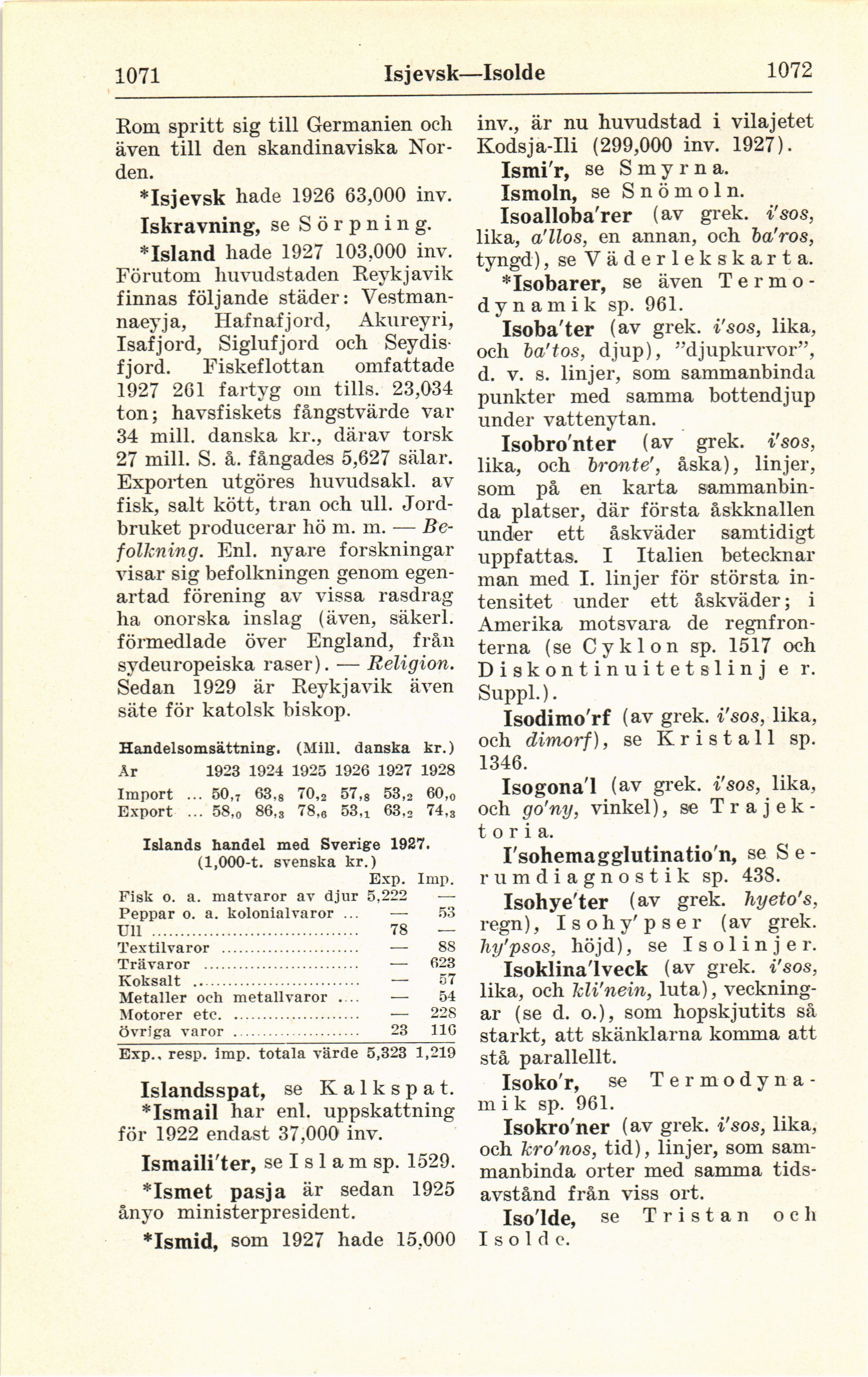 Islands handel med Sverige 1927.
