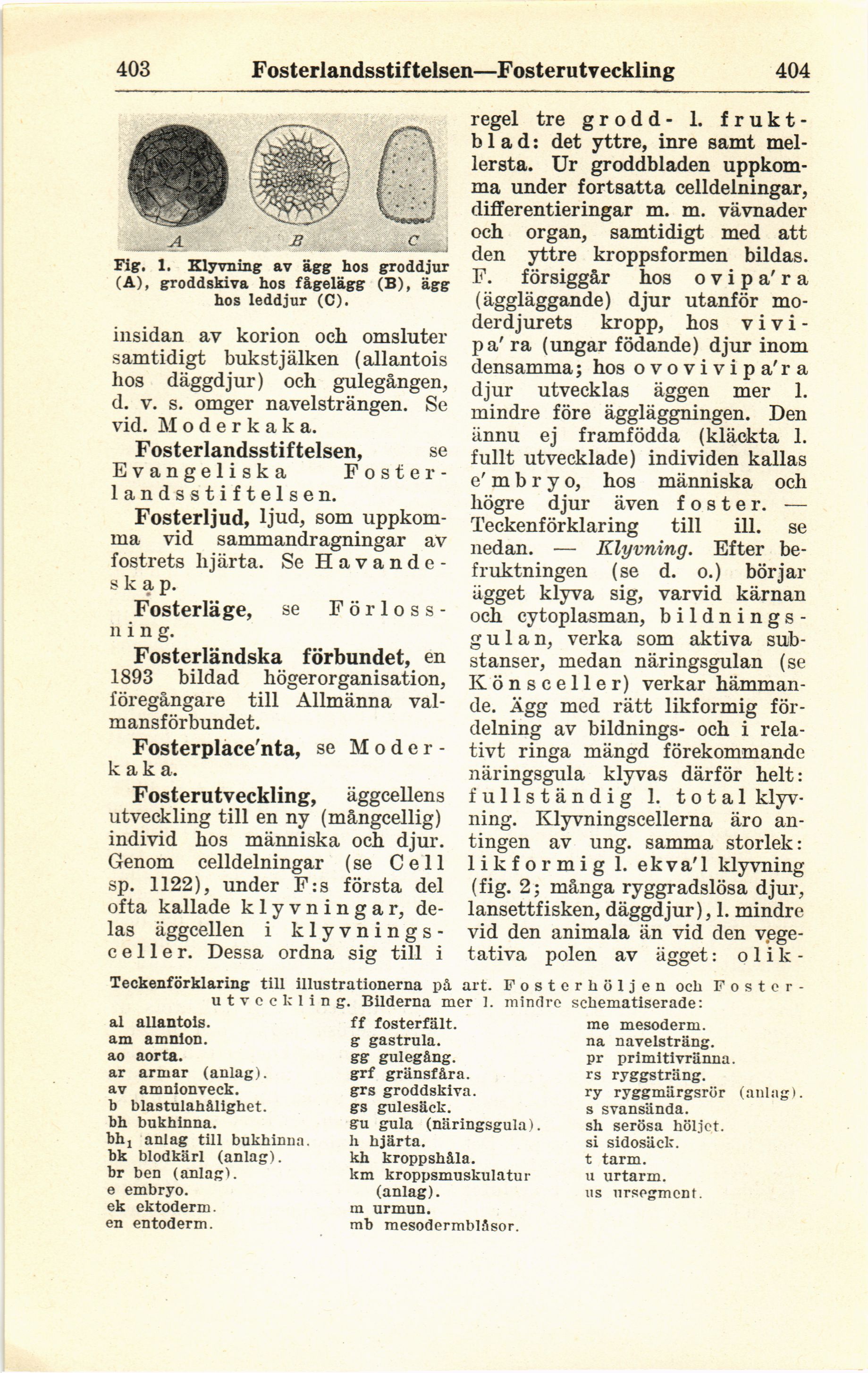 Teckenförklaring till illustrationerna på art. Fosterhöljen och