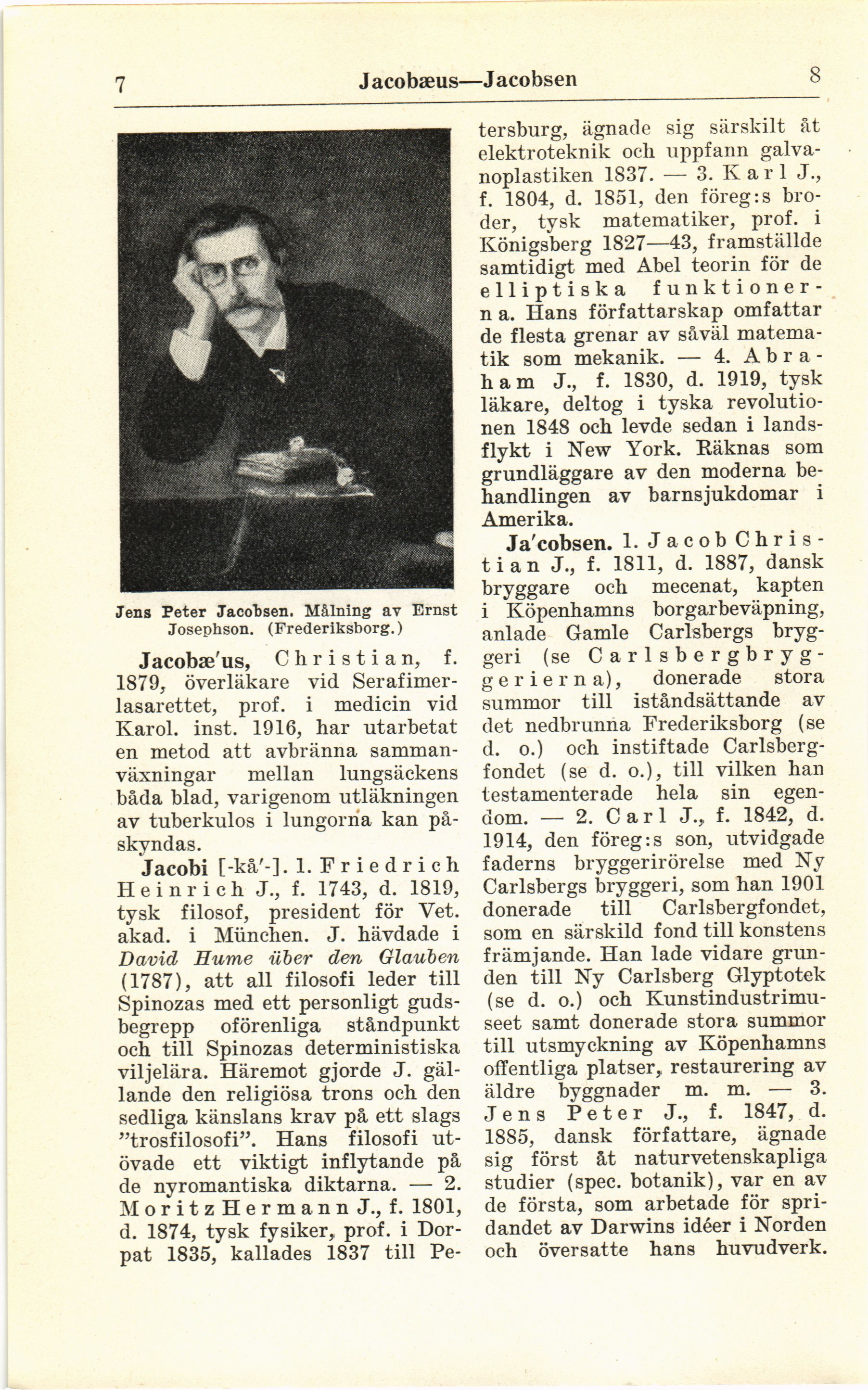 Full resolution (JPEG) - On this page / på denna sida - Jacobæus, Christian - Jacobi - 1. Friedrich Heinrich Jacobi - 2. Moritz Hermann Jacobi - 3. Karl Jacobi - 4. Abraham Jacobi - Jacobsen - 1. Jacob Christian Jacobsen - 2. Carl Jacobsen - 3. Jens Peter Jacobsen