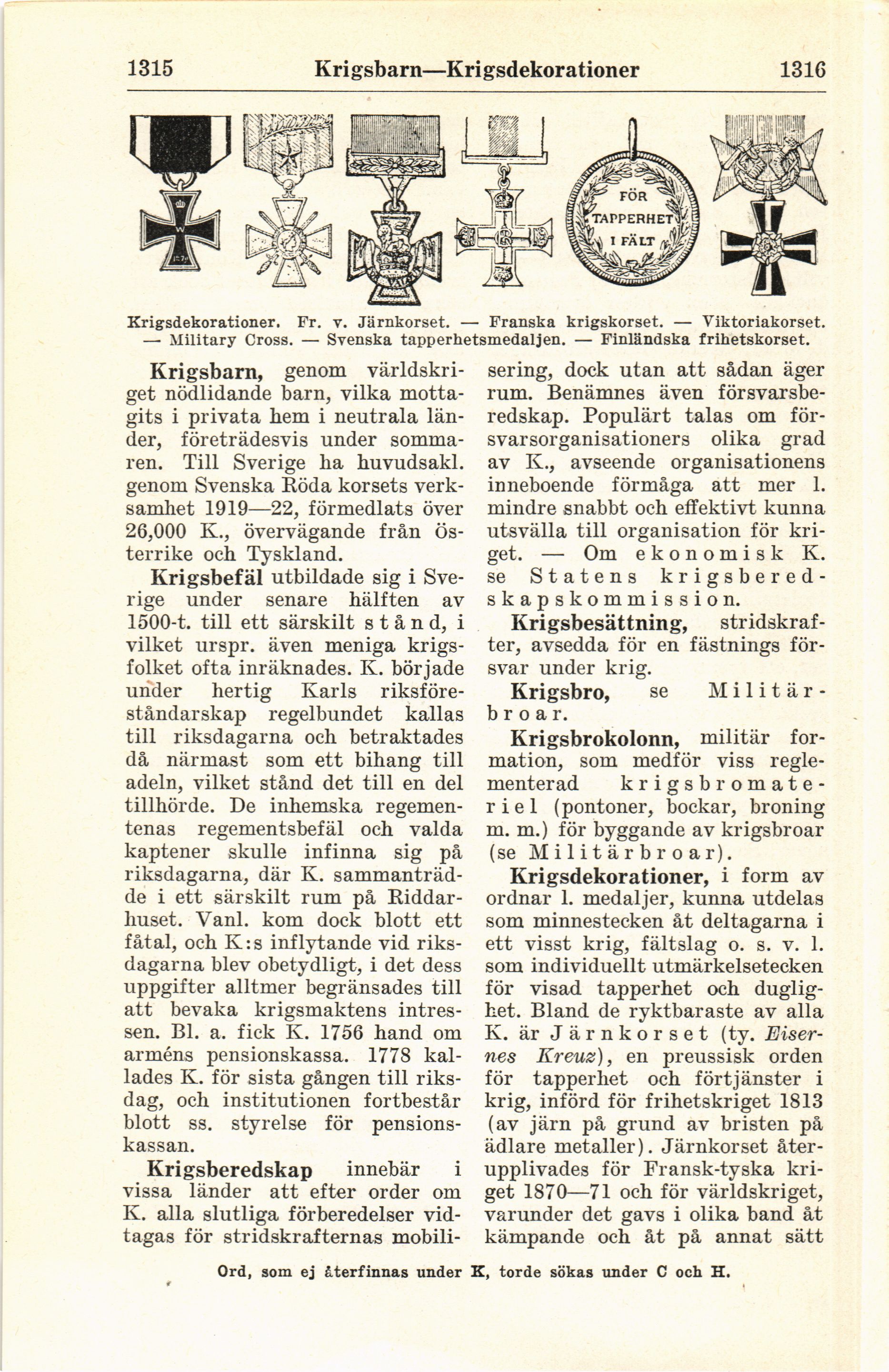— Military Cross. — Svenska tapperhetsmedaljen. — Finländska frihetskorset.