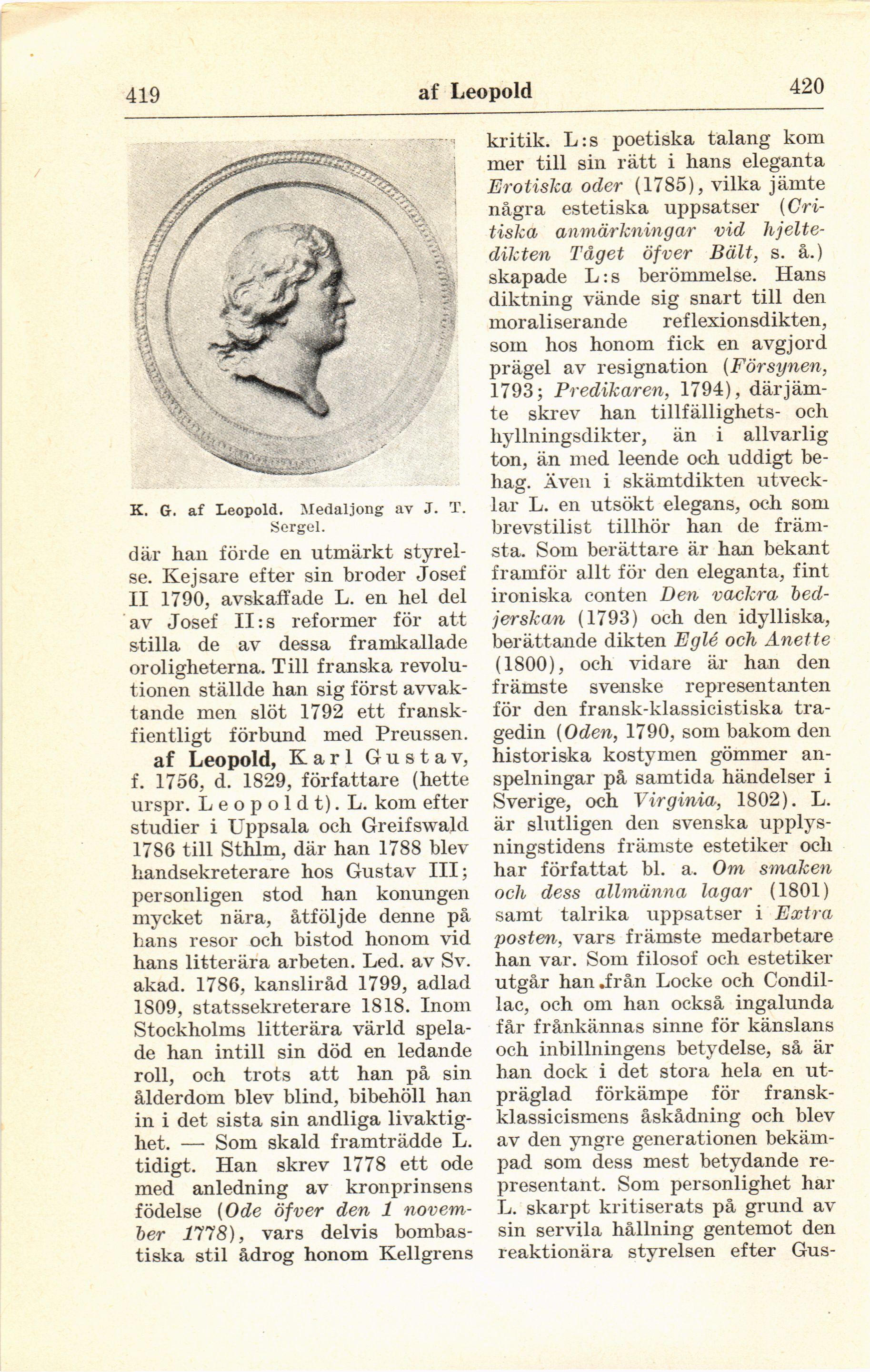 K. G. af Leopold. Medaljong av J. T.
