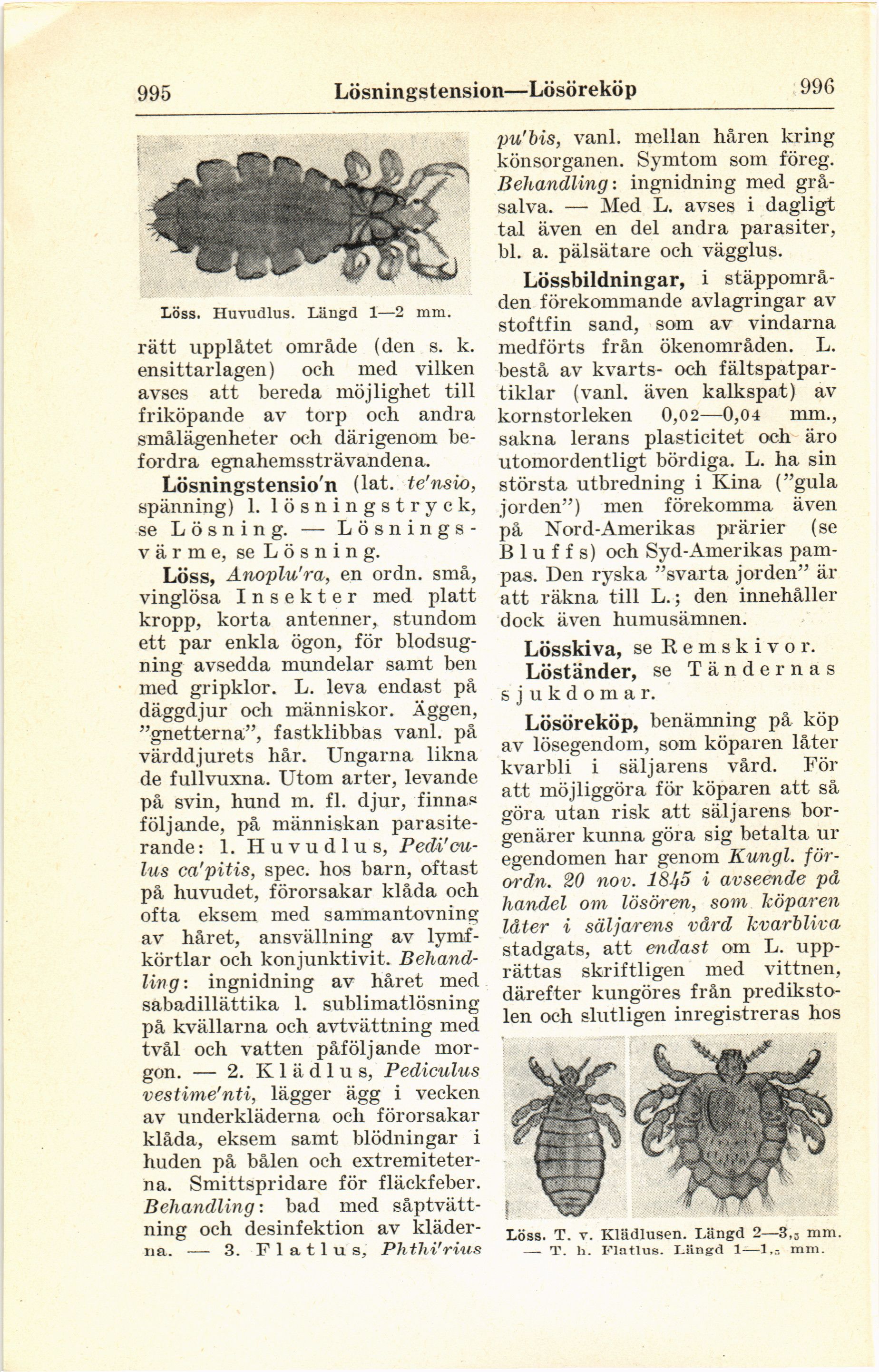 Löss. T. v. Klädlusen. Längd 2—3,5 mm.