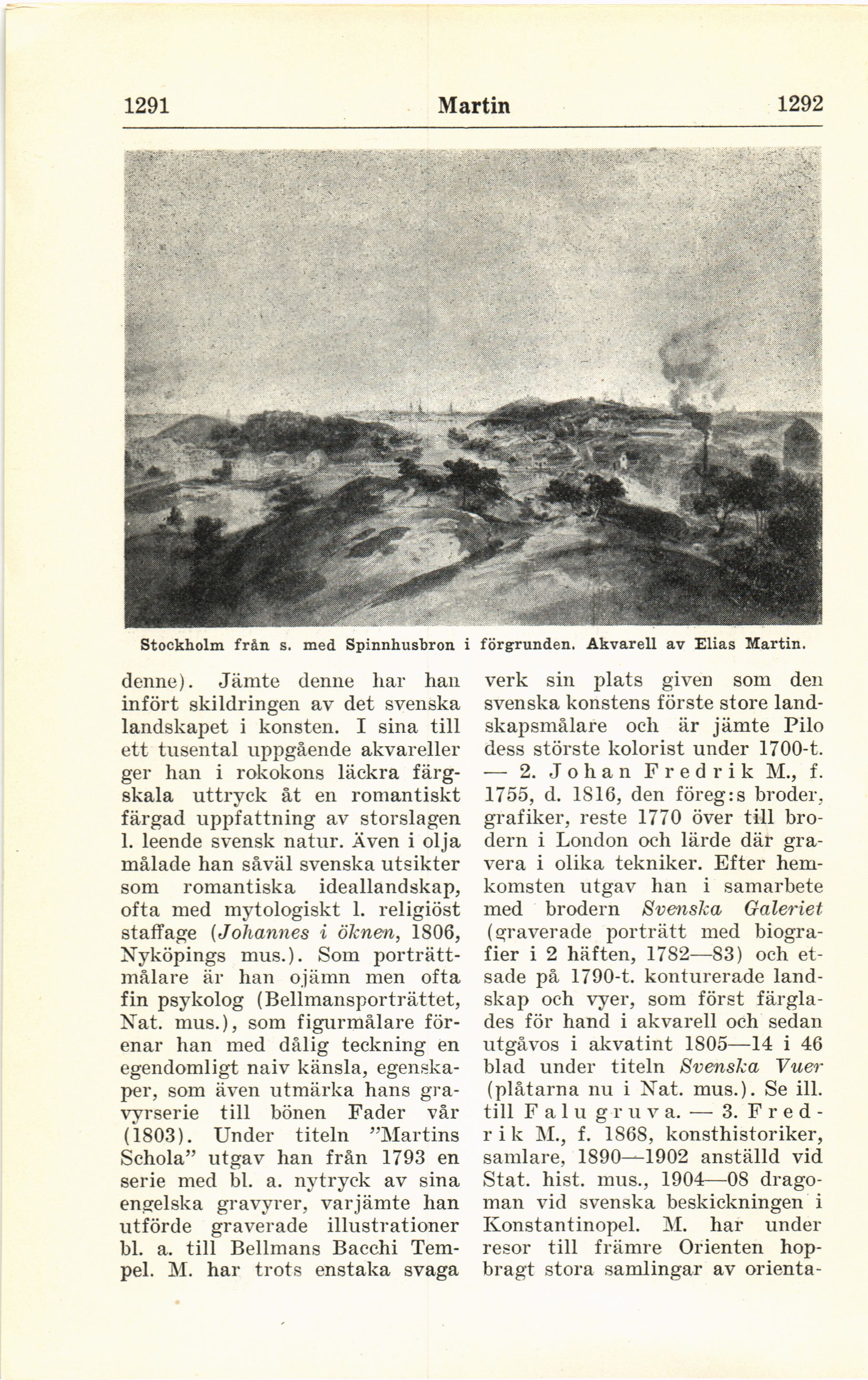 Stockholm från s. med Spinnhusbron i förgrunden. Akvarell av Elias Martin.