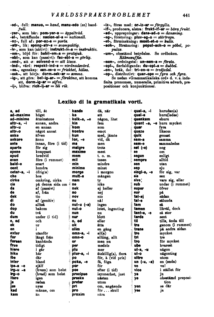 Lexiko di la gramatikala vorti.