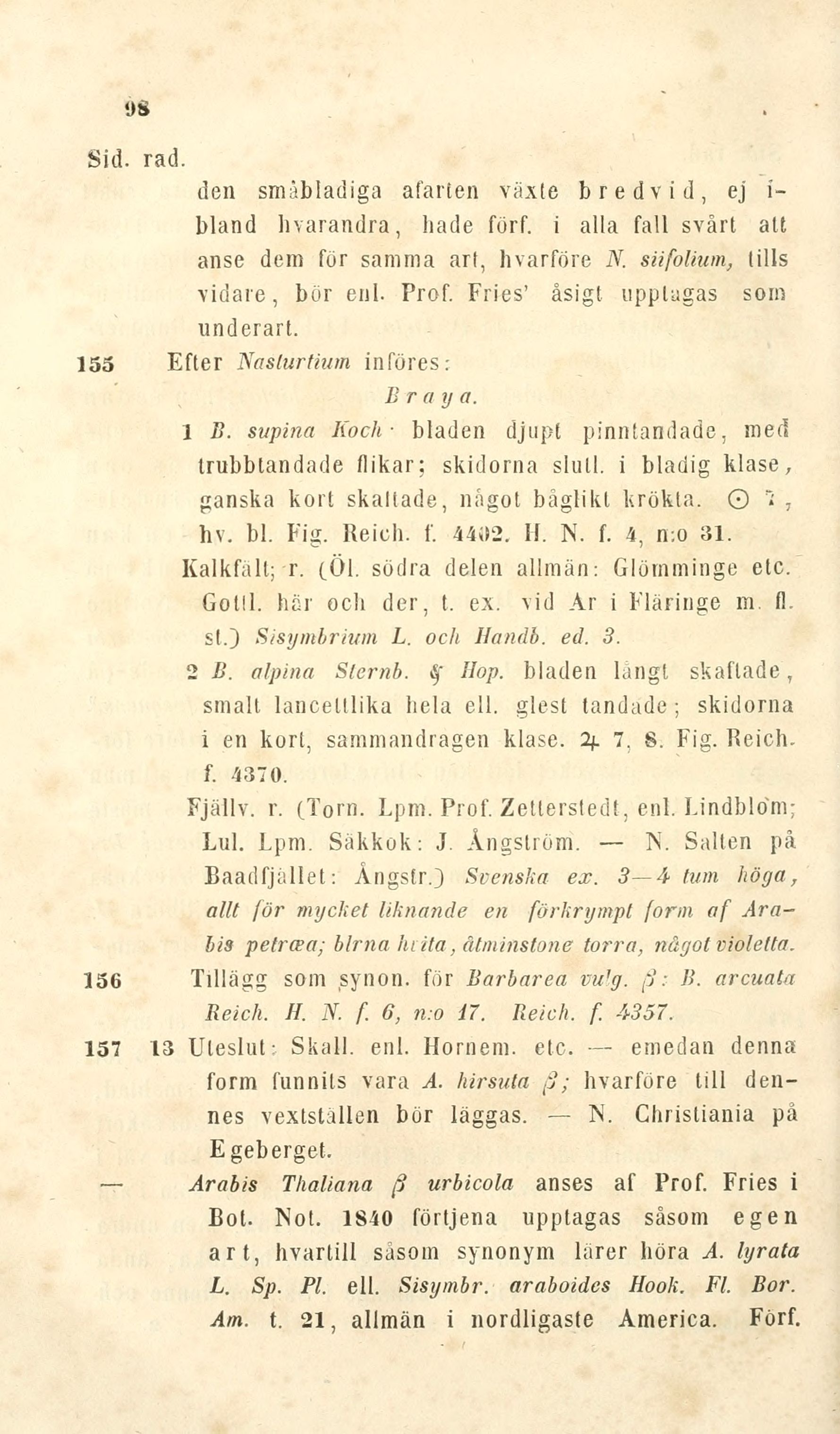 156 Tillägg som synon. för Barbarea vu}g. ß: B. arcuata