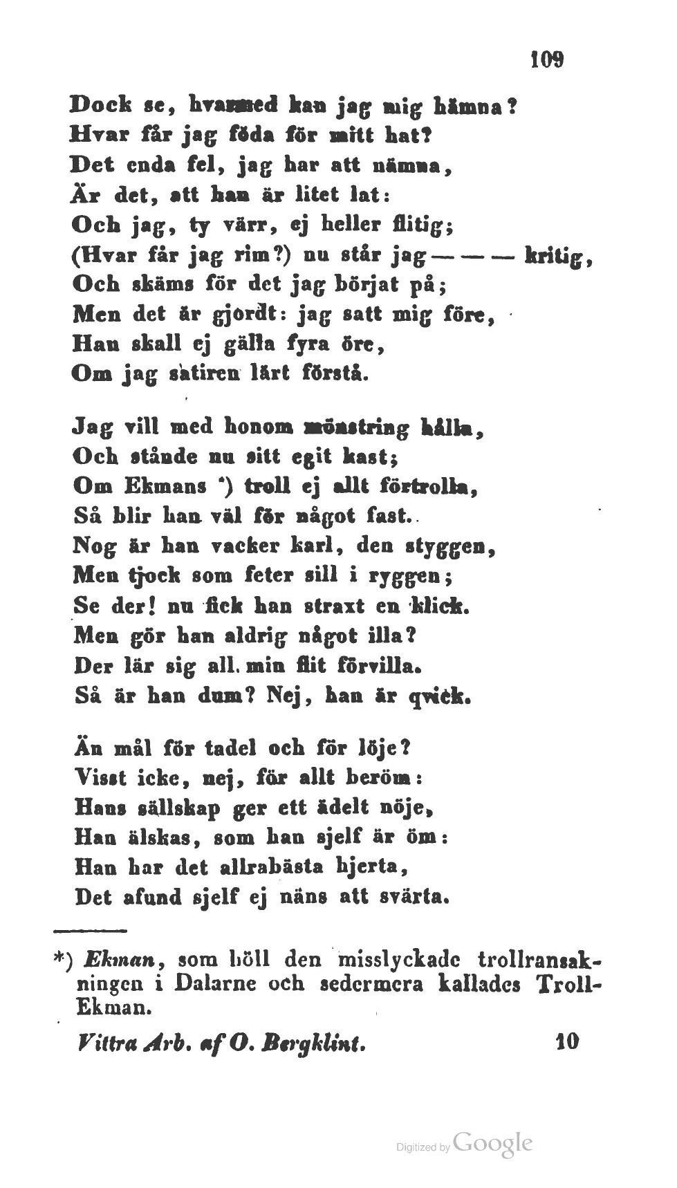 Om Ekmans *) troll ej allt förtrolla,