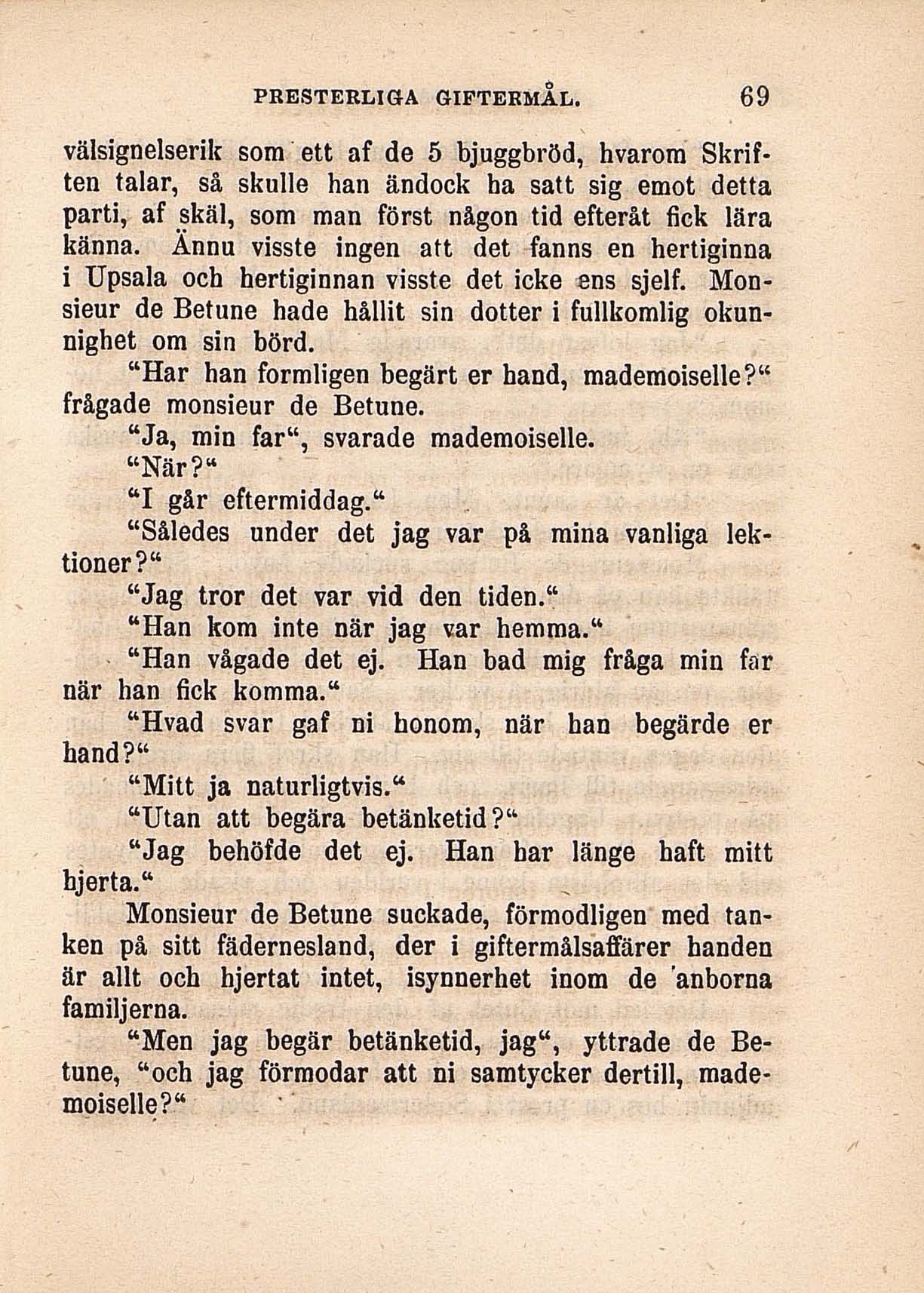 Monsieur de Betune hade hållit sin dotter i fullkomlig