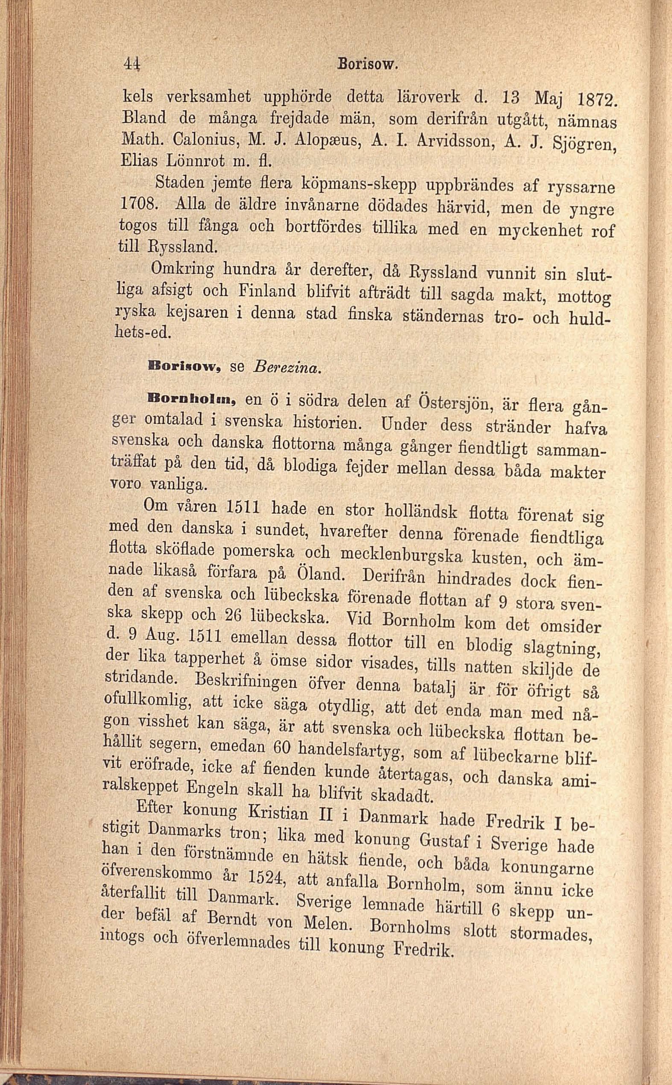 Math. Calonius, M. J. Alopæus, A. I. Arvidsson, A. J. Sjögren,