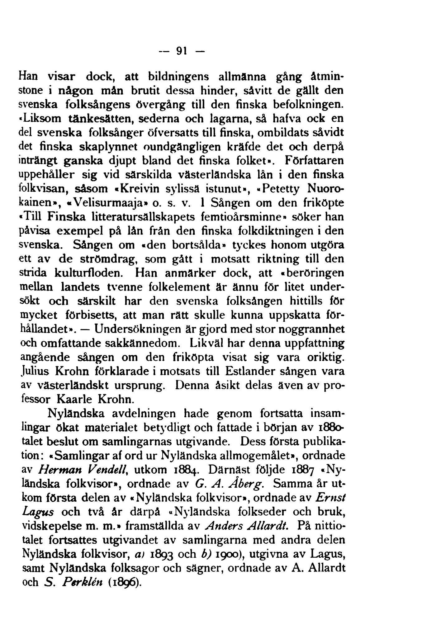 Nyländska folkvisor, a) 1893 och b) 1900), utgivna av Lagus,