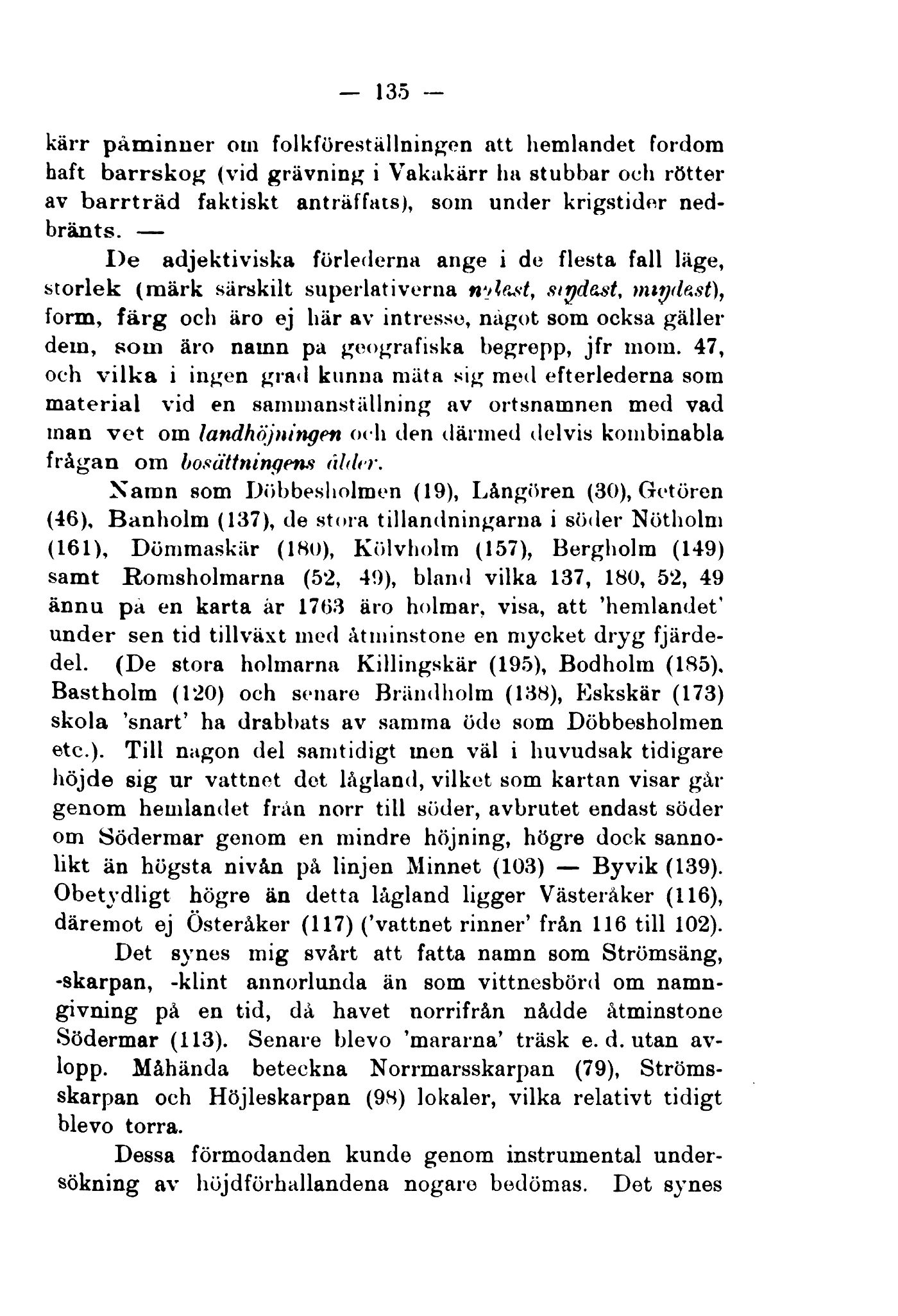 (46), Banholm (137), de stora tillandningarna i söder Nötholm