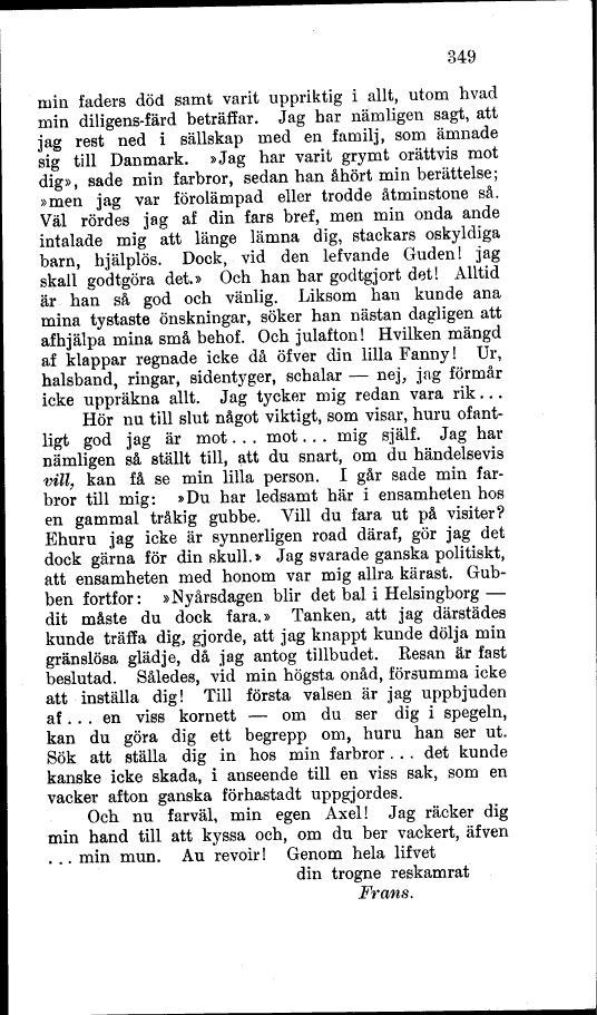 Och nu farväl, min egen Axel! Jag räcker dig