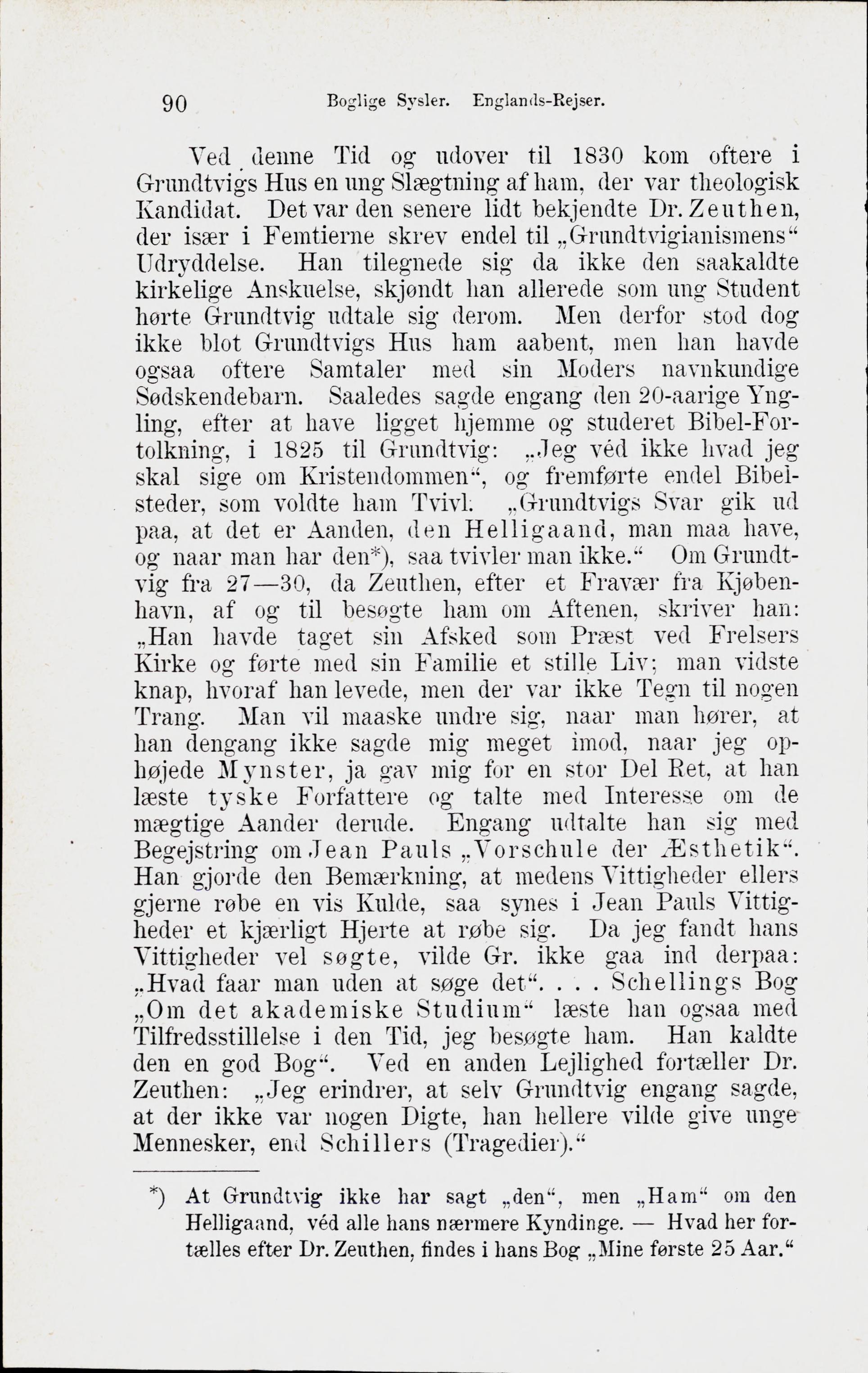 og nåar man har den*), saa tvivier man ikke." Om Grundt