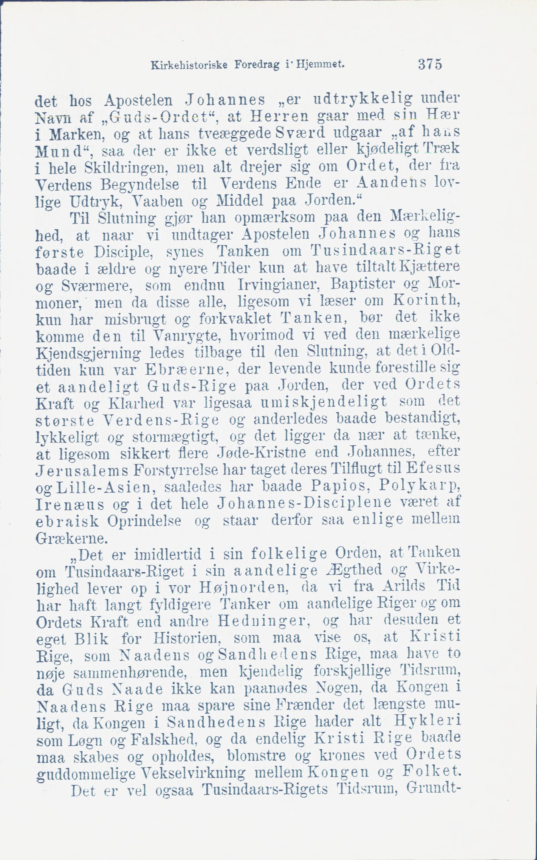 Kirkehistoriske Foredrag i" Hjemmet. 375