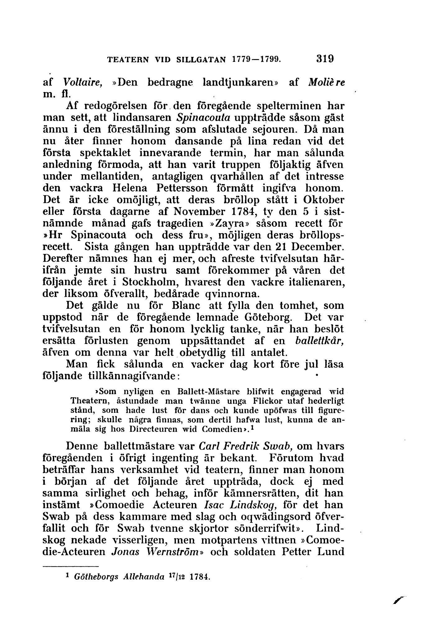 Denne ballettmästare var Carl Fredrik Swab, om hvars