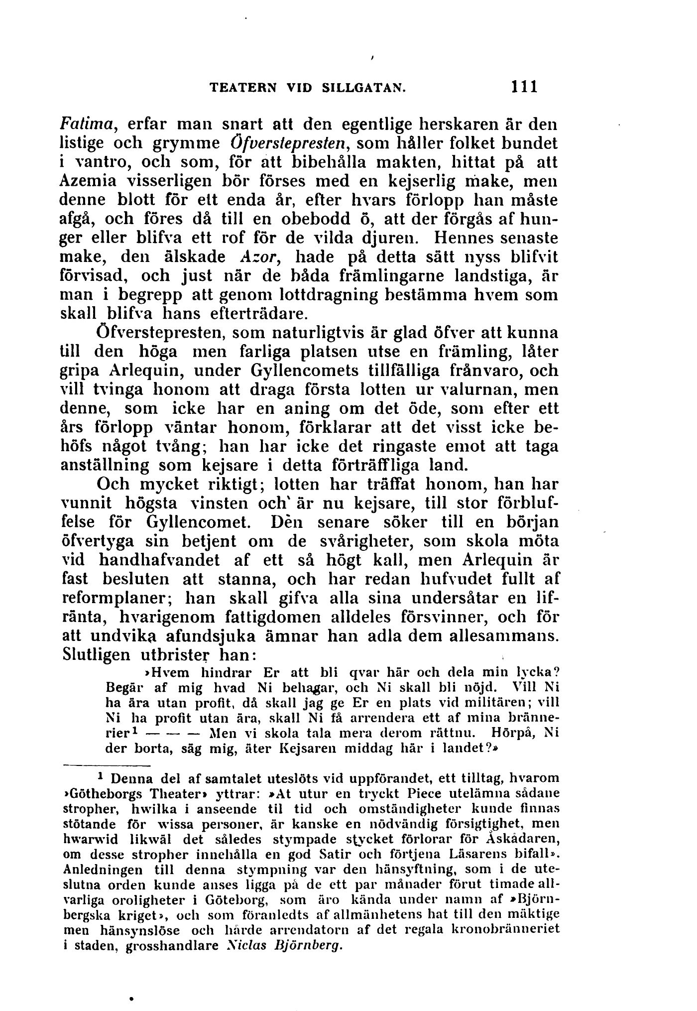 »Götheborgs Theater» yttrar: »At utur en tryckt Piece utelämna sådane