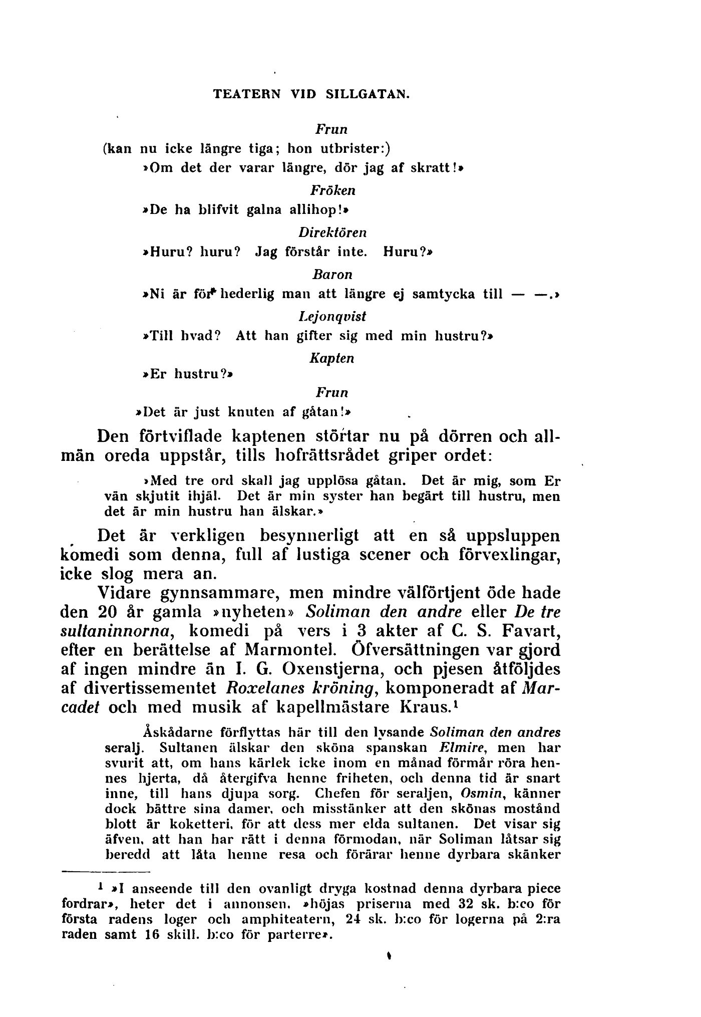 af ingen mindre än I. G. Oxenstjerna, och pjesen åtföljdes