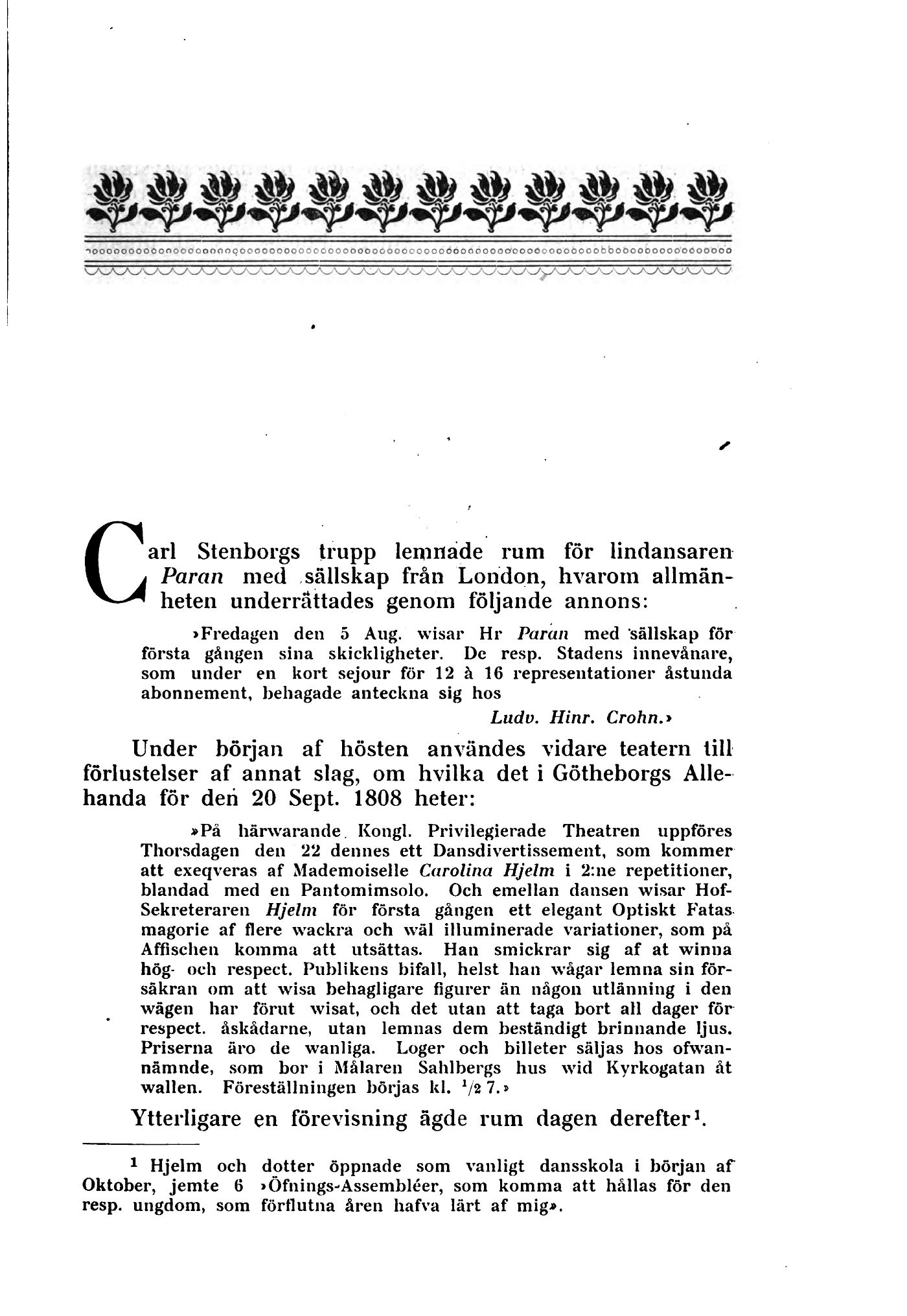 »Fredagen den 5 Aug. wisar Hr Paran med sällskap för
