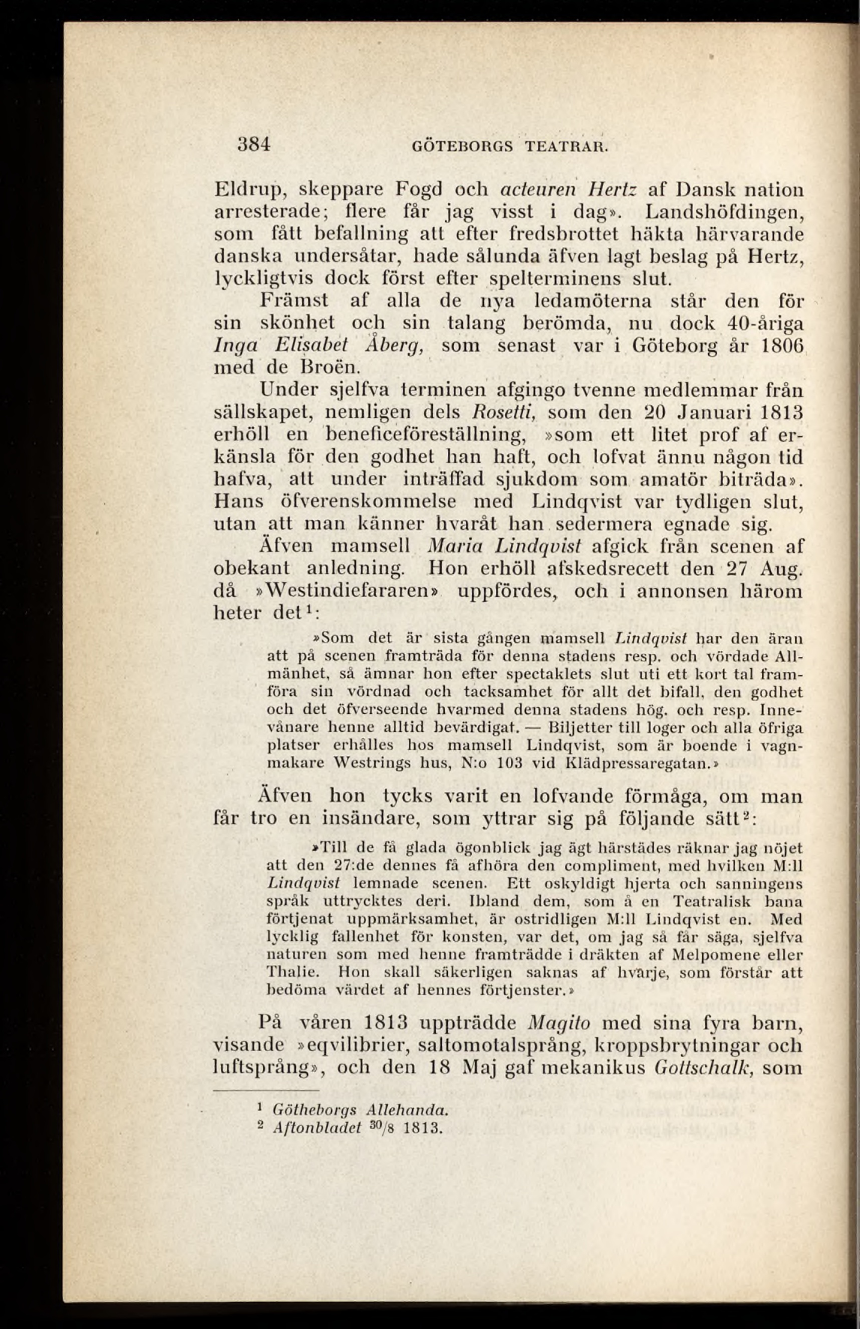 Äfven mamsell Maria Lindqvist afgick från scenen af