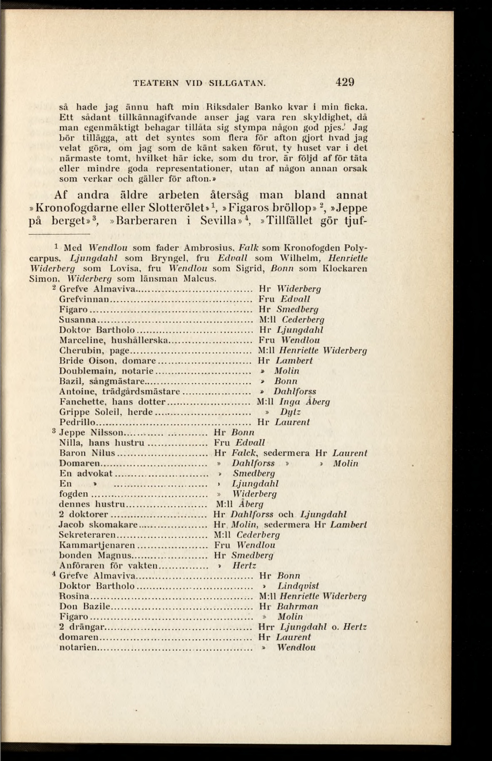 » Kronofogdarne eller Slotterölet»1, »Figaros bröllop»2, »Jeppe