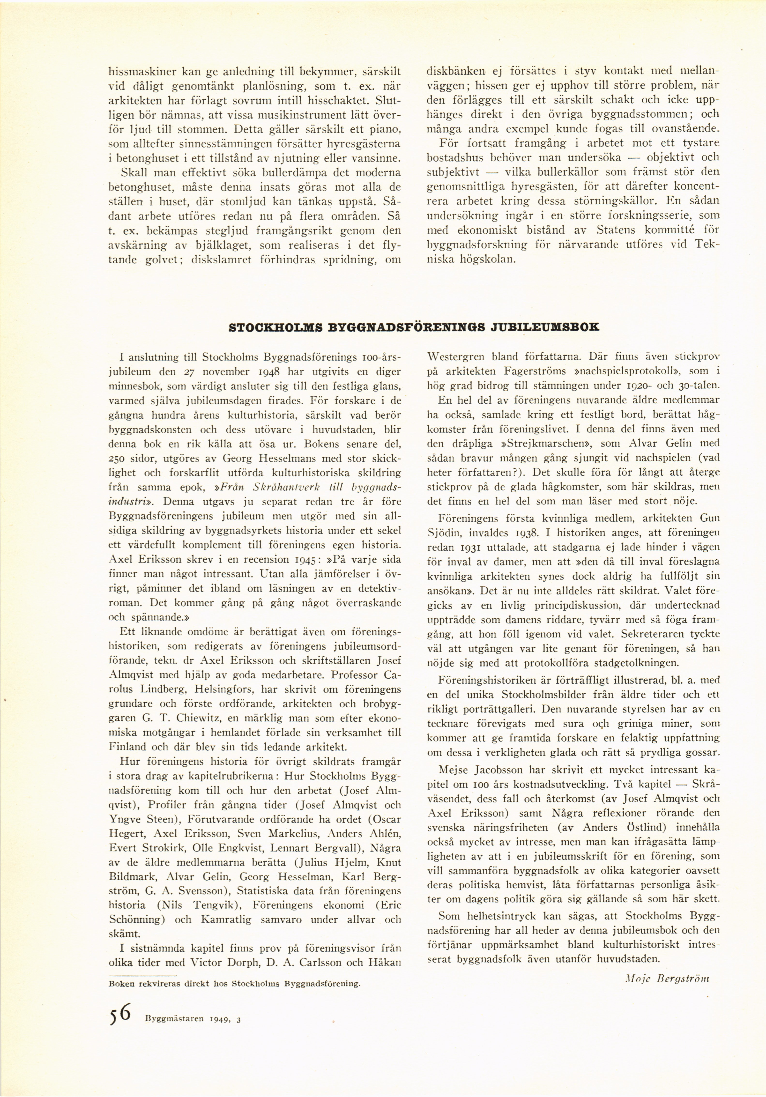 Full resolution (JPEG) - On this page / på denna sida - N:r 3 - Ljudisolering i bostadshus av betong, av civilingenjör Ove Brandt - Stockholms Byggnadsförenings Jubileumsbok. Recension, av Moje Bergström, arkitekt SAR