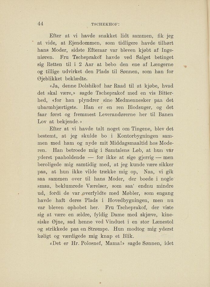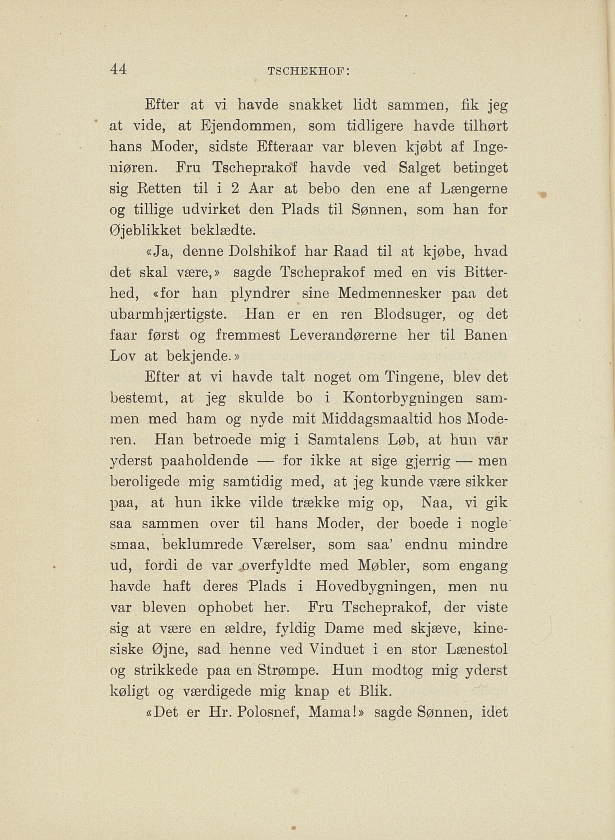 var bleven ophobet her. Fru Tscheprakof, der viste