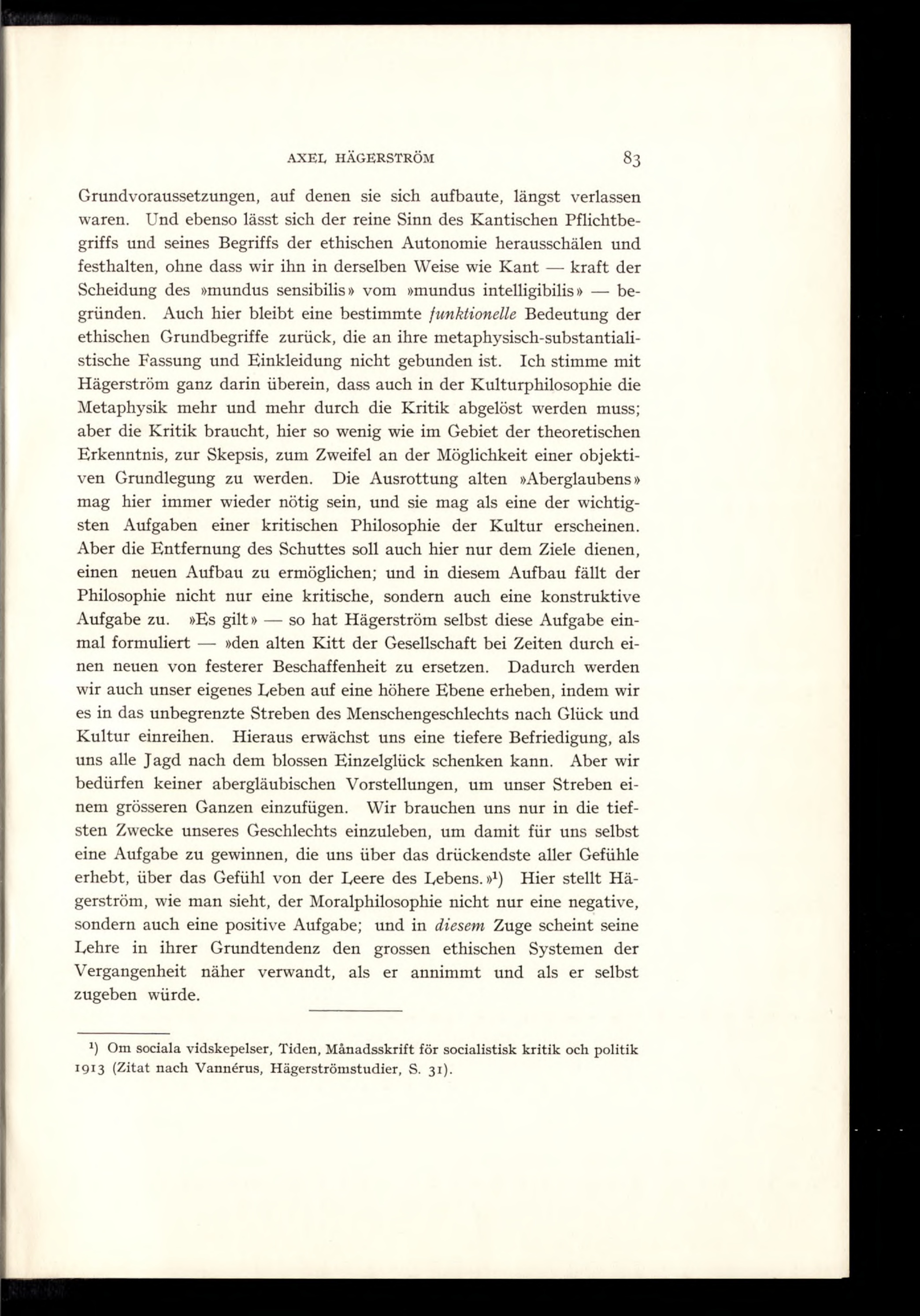 1913 (Zitat nach Vannérus, Hägerströmstudier, S. 31).