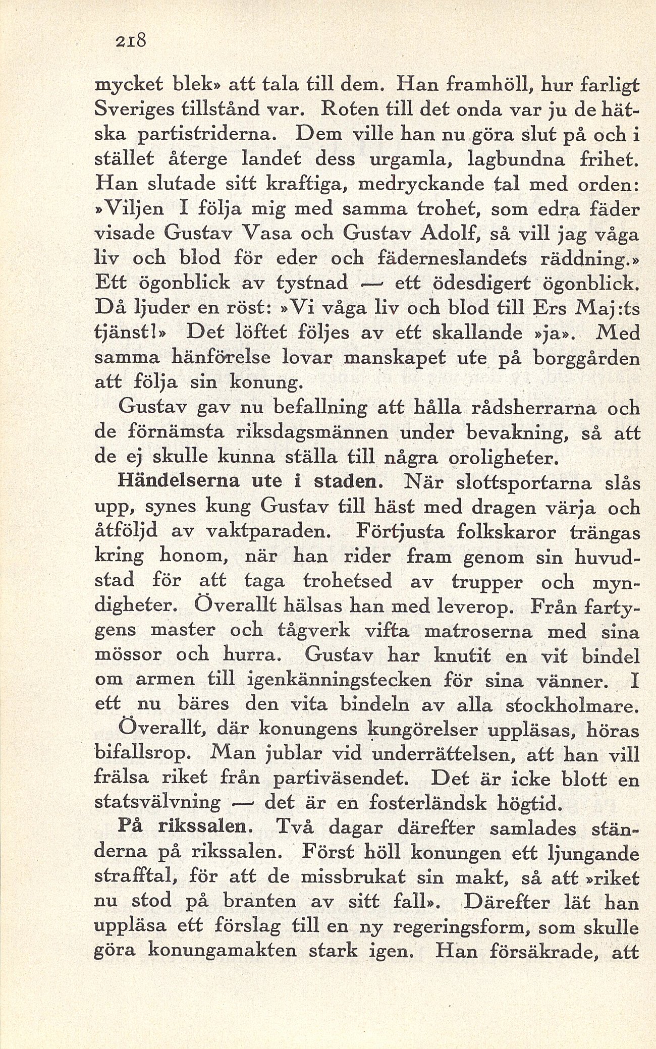 ständerna på rikssalen. Först höll konungen ett ljungande