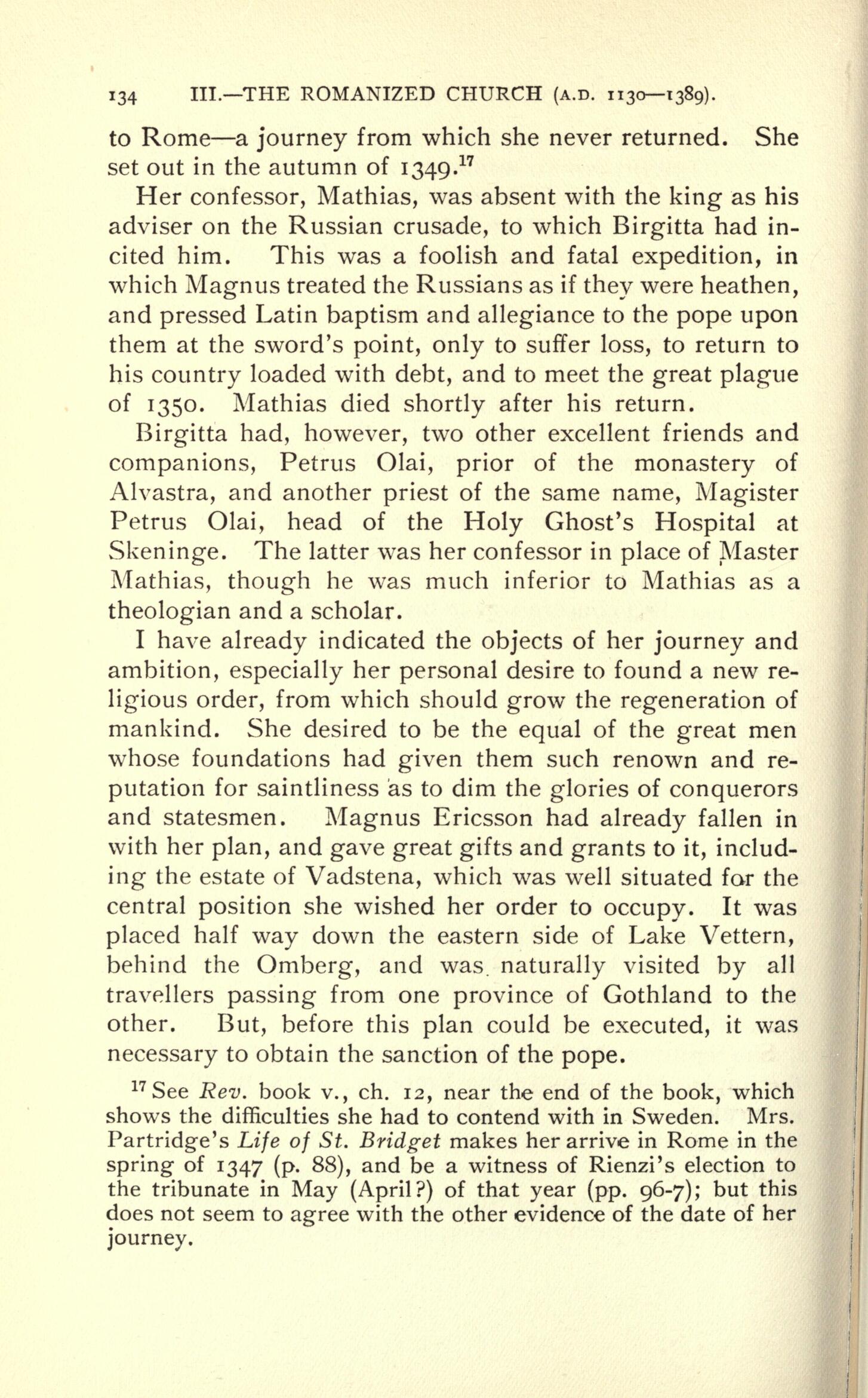 Partridge s Life of St. Bridget makes her arrive in Rome in the